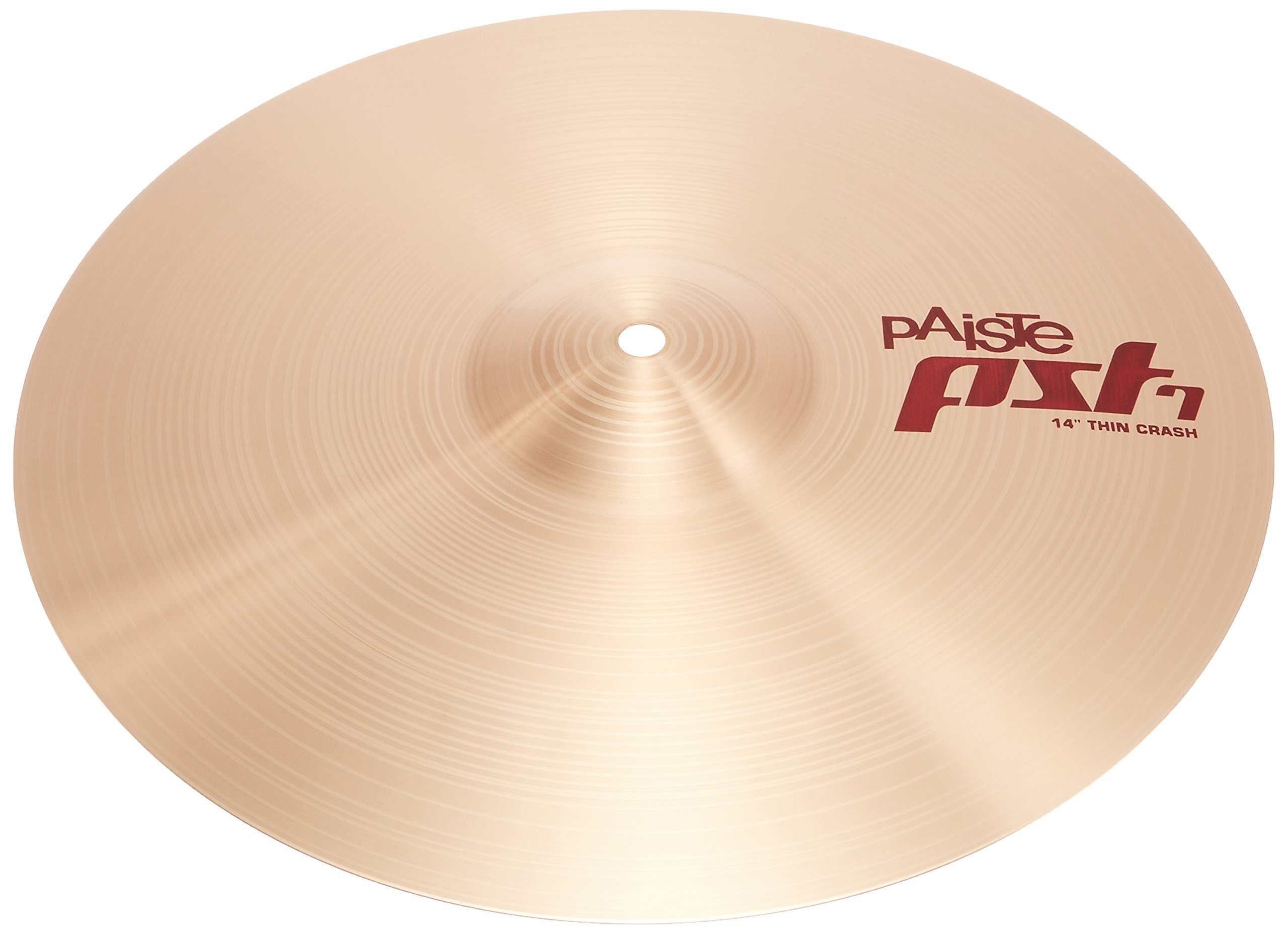 Platillo Crash Delgado de 14 pulgadas. Paiste Sound Technology (PST) ofrece una línea asequible para bateristas que buscan un sonido, apariencia y sensación tradicionales. La base de PST7 es bronce CuSn8 que proviene de la legendaria serie 2002. Los platillos son torneados por artesanos suizos de Paiste para lograr su distintiva apariencia y acabado tradicional. El resultado de la precisa fabricación suiza de Paiste es un sonido cálido y claro en general y al ofrecer tres clases de peso, ligero/delgado, medio y pesado, PST7 abarca una amplia gama de estilos musicales diferentes.