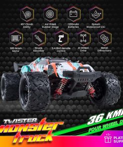 Este coche de control remoto es un ejemplo de excelencia en manufactura, mostrando tanto potencia como precisión. Alcanzando velocidades de hasta 36 km/h, creamos este camión monster para dar a los conductores experiencias de alta adrenalina. Experimenta una rápida capacidad de respuesta gracias a sus controles avanzados y vive momentos fenomenales e inmersivos que nadie olvidaría.
