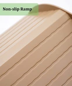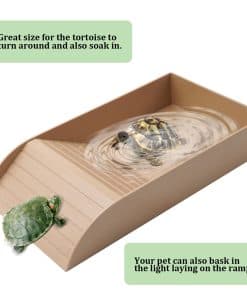 Este artículo es multifuncional, se puede utilizar como plato de comida o agua, plataforma para tomar el sol, o un lugar para baño y descanso. Diseño simple con rampas incorporadas, fácil para que tu mascota entre y salga; Hecho de plástico ABS resistente, muy duradero y resistente, gran capacidad en comparación con artículos regulares; Encaja perfectamente en la esquina de tu recinto, no hay espacio desperdiciado alrededor del artículo; Fácil de usar, limpiar y reemplazar con agua fresca; Se puede utilizar en un terrario como plato de agua o comida; también se puede utilizar para bañarse y tomar el sol, ¡puedes descubrir que a tu tortuga le encanta remojarse! Especificaciones: – Material: Plástico ABS resistente – Tamaño del producto: 14.17″ L x 7.87″ A x 2.44″ Al – Peso del producto: 1.08 libras Contenido del paquete: – 1 x Plato de alimentación para reptiles con rampa Nota: – El ángulo de inclinación de la rampa puede ser un poco empinado para animales más pequeños. Por favor, verifica el tamaño en la imagen del producto antes de comprar para asegurarte de que cada sección de este artículo sea adecuada para tu mascota.