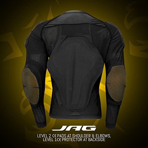 Playera de malla transpirable para motocicleta J.A.G. All Seasons para hombres en negro. Esta playera cuenta con protectores acolchados para mayor protección. Fabricada con material de malla transpirable para mayor comodidad durante todo el año. Importada.