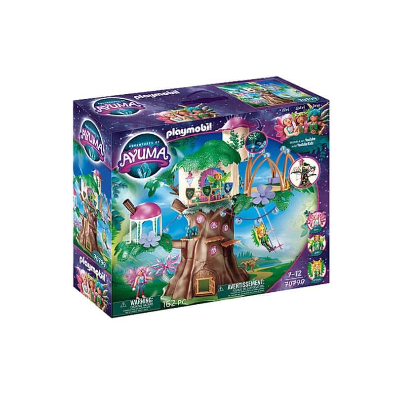 ¡Bienvenido a las Adventures of Ayuma! Únete a las Hadas del Bosque, Hadas de Cristal y Hadas Caballeras, que lado a lado con sus mejores amigos, una buena dosis de coraje y el alma animal correcta, emprenden un viaje heroico. Pasa tiempo con las hadas y sus almas animales en el Árbol Comunitario. Dentro de esta espaciosa casa del árbol, verás a las almas animales refugiarse en el tronco mientras las hadas cocinan en la cocina de arriba. Acuéstate con un buen libro en la sala común antes de vigilar a las hadas murciélago en el observatorio. Cuando el día termina y cae la noche, las hadas pasan tiempo observando las estrellas en la torre. Incluye un proyector genial que puede crear un cielo estrellado en el techo de la habitación de un niño, ¡así que tanto las hadas como los niños seguramente tendrán un sueño encantado! Para más aventuras mágicas, combina este set con el resto del tema PLAYMOBIL Adventures of Ayuma (70799-70806 se venden por separado). El set incluye tres hadas, lobo, lince, mariposa, taburetes de historia, suministros de cocina, almohadas y otros accesorios. Requiere 3 pilas AAA. Dimensiones: 21.3 x 16.9 x 20.1 pulgadas (LxWxH). Recomendado para edades de 7 a 12 años. Advertencia. Riesgo de asfixia. Contiene una pelota pequeña y piezas pequeñas. No apto para niños menores de 3 años.