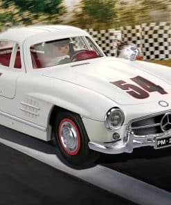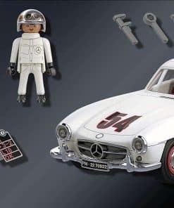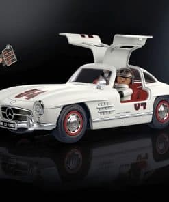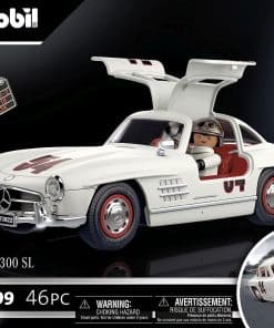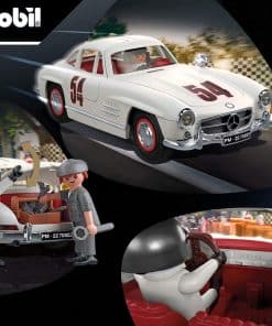 Introducción del Mercedes-Benz 300 SL, un clásico ícono de automóvil deportivo de los años 50 con legendarias puertas de ala de gaviota. Cuando fue presentado en el International Motor Sports Show en Nueva York en 1954, el Mercedes-Benz 300 SL fue considerado el automóvil deportivo más rápido de su época, alcanzando velocidades máximas de 228 mph. Con sus puertas de ala de gaviota, inyección directa de gasolina, y chasis tubular de rejilla, el 300 SL es altamente reconocible. La receta de éxito del 300 SL es su perfecta mezcla de carácter de carrera rudo y resistente mezclado con un toque de lujo y extravagancia. Y ahora, el automóvil deportivo de ensueño del siglo XX aparece como una versión PLAYMOBIL con icónicas puertas de ala de gaviota articuladas, parachoques y parrilla del radiador en color cromo, y accesorios de los años 50. Abra fácilmente las puertas de ala de gaviota para sentar las figuras. Hay espacio más que suficiente en el maletero para guardar cosas. Con la ayuda del tablero de aviso para boxes, el piloto se mantiene informado sobre su posición durante la carrera. El Mercedes-Benz 300 SL de PLAYMOBIL – un ícono de automóvil deportivo que ninguna colección de automóviles debería prescindir. El conjunto incluye un piloto de carreras, mecánico, caja de herramientas, bandera de línea de meta, tablero de aviso para boxes, y muchos otros accesorios para una carrera divertida alrededor de la pista. La placa de mesa incluida lista la información más importante del automóvil deportivo. Recomendado para edades de cinco a noventa y nueve años. Advertencia. Peligro de asfixia. Piezas pequeñas. No apto para niños menores de 3 años.