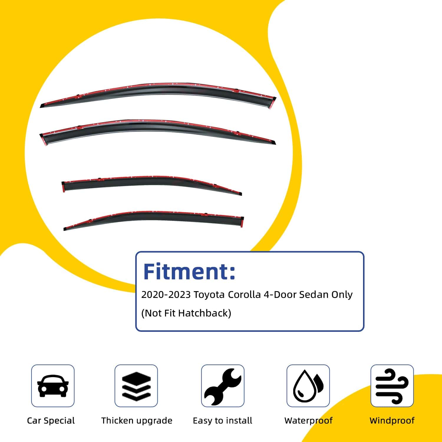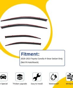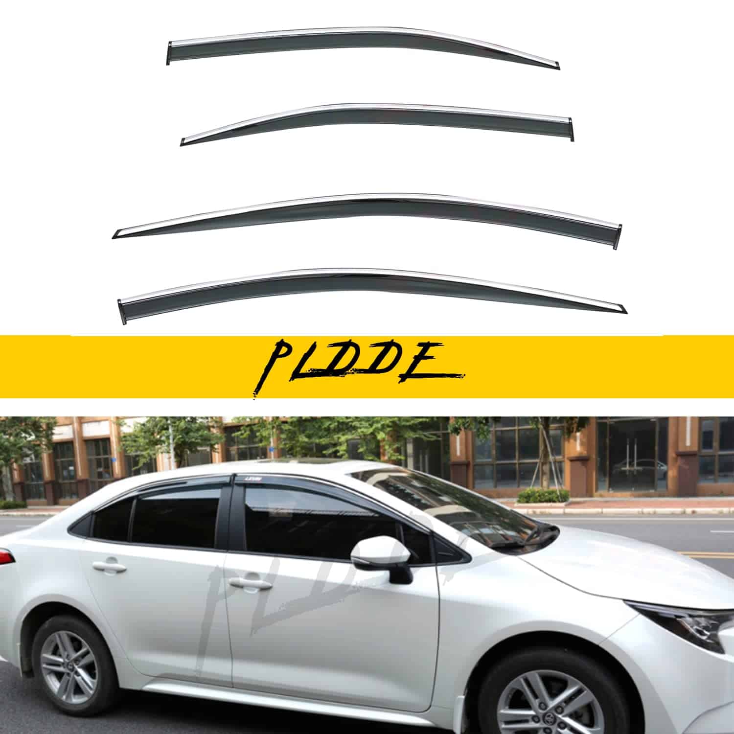 Garantía: Ofrecemos una garantía de 6 meses contra defectos de fabricación. Características: 100% Nuevo en caja. El último diseño de molduras cromadas le da a su vehículo un aspecto de lujo y único entre la multitud. Protegido completamente de la ventana del sol, viento, lluvia, deflector de nieve. Ayuda a reducir la acumulación de calor en vehículos estacionados al permitir que entre aire cuando está parcialmente abierto. Material de larga duración diseñado para resistir los rigores de los elementos. Permite dejar las ventanas abajo unos centímetros para obtener aire fresco incluso en días lluviosos. Viene con cintas adhesivas genuinas de doble cara automotrices 3M. Instalación sencilla. Mejora drásticamente el estilo y la apariencia.