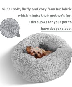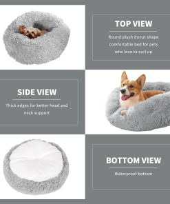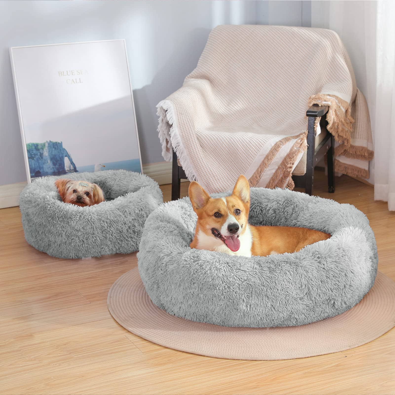 Cama para mascotas, cama para perros, cama para gatos, sofá para dormir y descansar redondo pequeño mediano 23 pulgadas 30 pulgadas gris beige rosa café marrón caqui