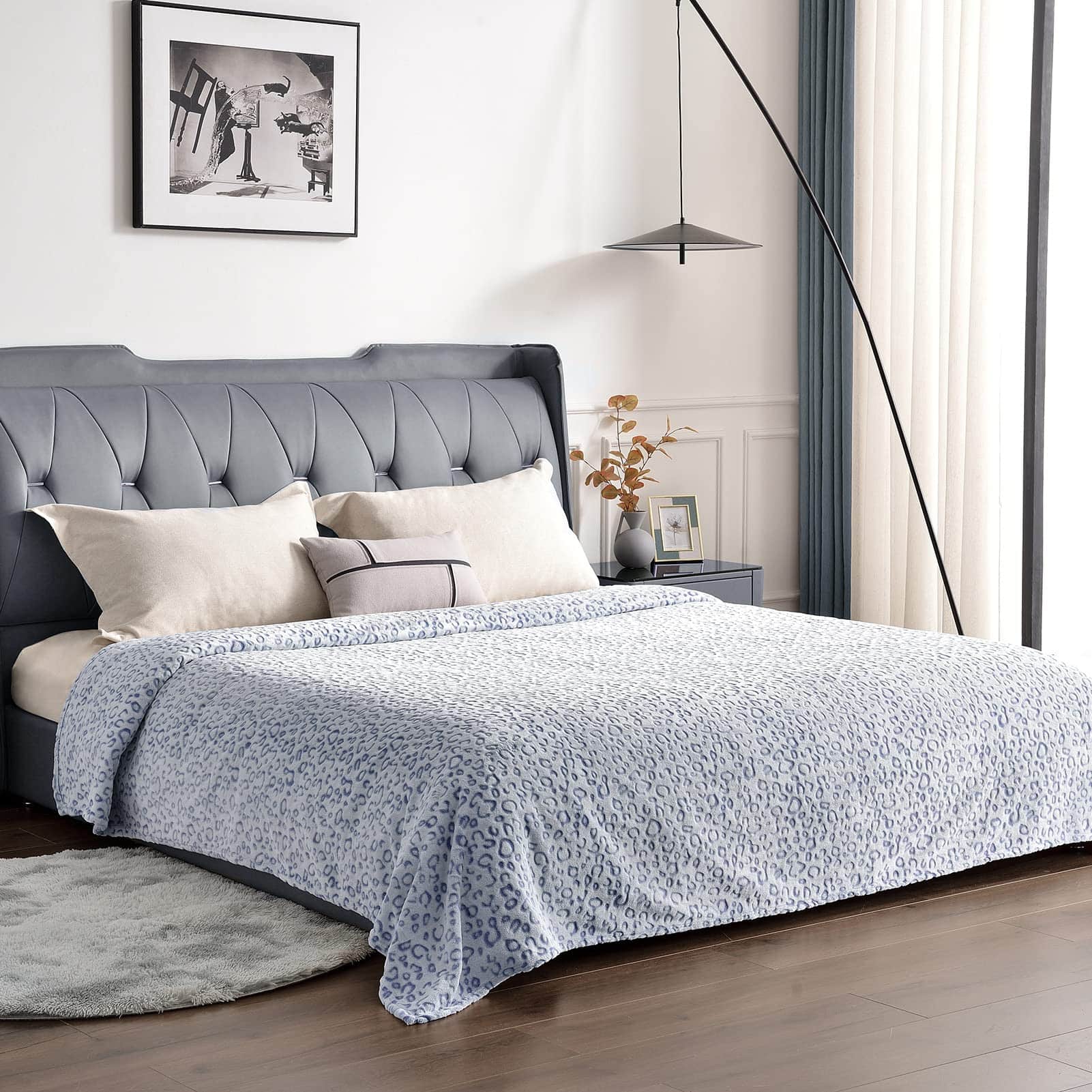 Manta de lanzamiento de leopardo de Pleasant Boulevard fabricada con una microfibra de poliéster 100% ultra suave de alta calidad. Esta manta/felpa es súper suave, duradera y ligera. Es resistente a las arrugas y decoloración, anti-pilling y es adecuada para todas las edades y estaciones. Esta manta está diseñada con una artesanía de última generación que la hace sentir exuberante, acogedora, cálida y cómoda. Con su fácil cuidado, se puede lavar por separado en agua fría y secar a baja temperatura. Nuestra manta está diseñada para ser más suave después de cada lavado. Tenemos una amplia selección de colores y tamaños para satisfacer todas tus necesidades. ¡Si no estás satisfecho por cualquier motivo, nos encargaremos de ti con un cambio!