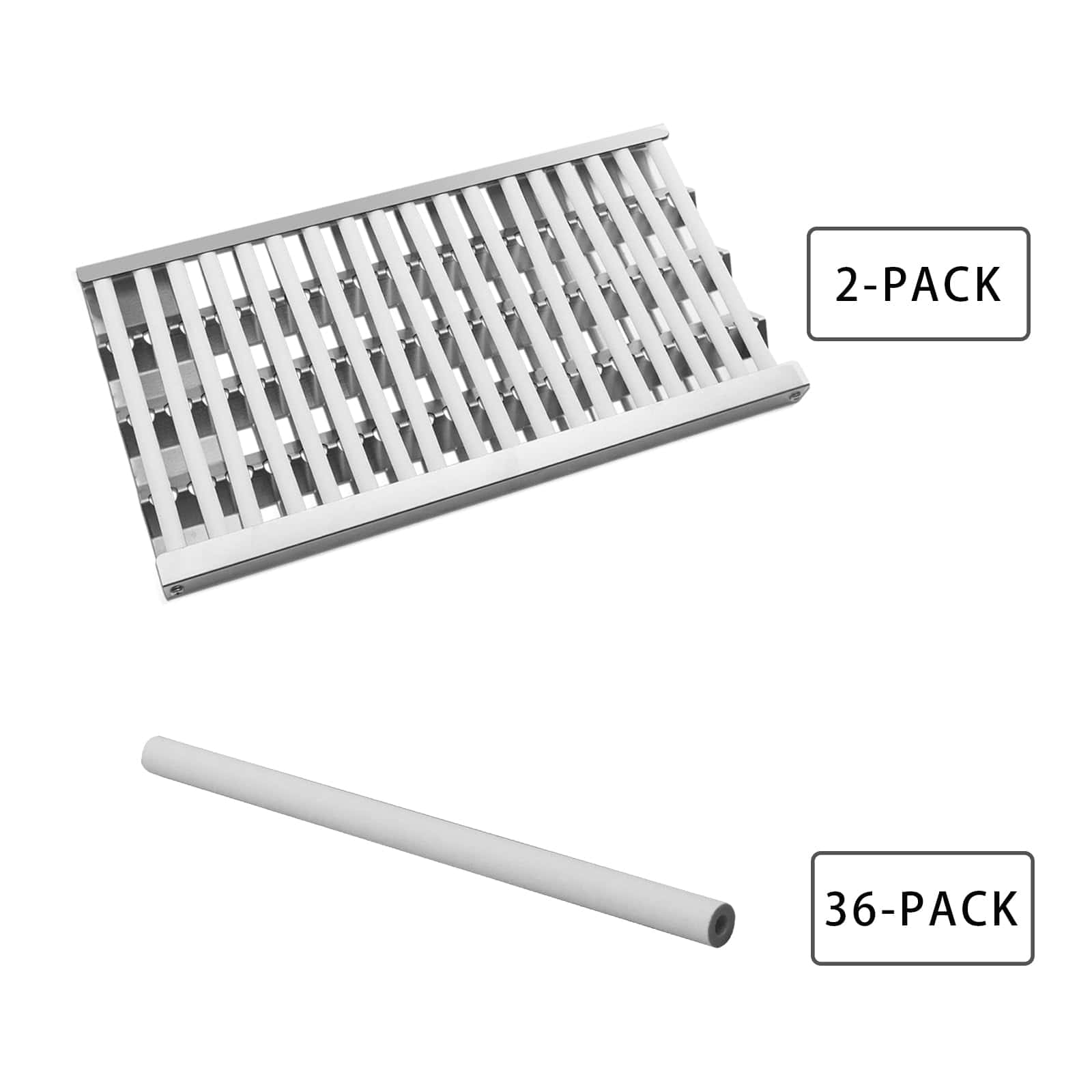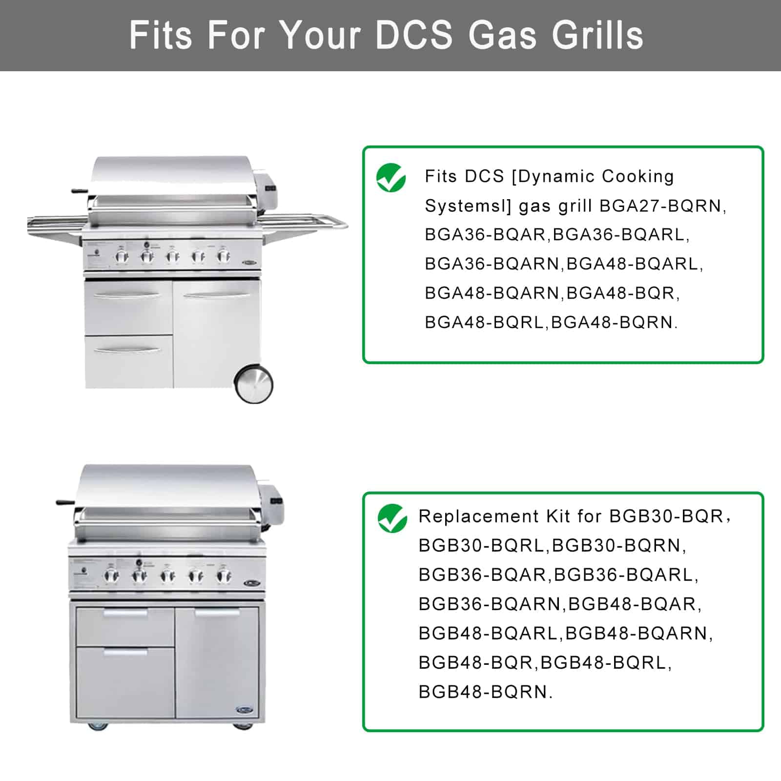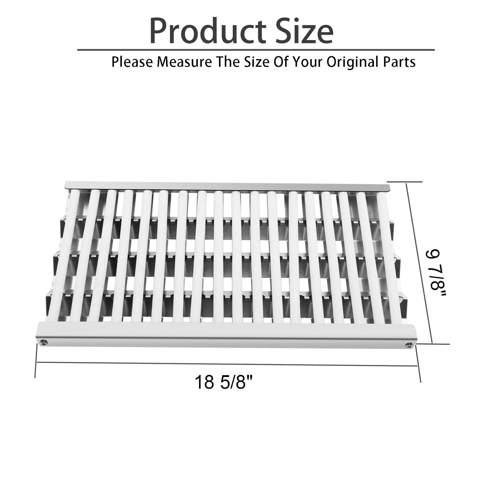 Plowo 18 5/8″ Placas de Calor de Parrilla de Acero Inoxidable de Repuesto para BGB48-BQRL, BGB48-BQRN, 48DBQAR, 48DBQR, 48EBQAR, BGA27-BQ, BGA27-BQR, BGA36-BQARL, BGA36-BQARN, Bandeja Radiante Completa de Varillas Cerámicas DCS. Estas placas de calor de parrilla están diseñadas para ser duraderas y de alta calidad. Con dimensiones de 18 5/8″ x 9 7/8″, son compatibles con una variedad de modelos de parrillas DCS. Hechas de acero inoxidable de alta resistencia, estas piezas son más gruesas que otras, lo que las hace más duraderas y resistentes a la oxidación, corrosión y calor. El paquete incluye 36 varillas cerámicas de 9.5″ para un mejor funcionamiento. Estas piezas de repuesto de parrilla mantendrán los residuos fuera de los orificios de los tubos de quemador, evitarán la exposición directa a la llama y ayudarán a atrapar goteos y aceite para agregar un delicioso sabor a la barbacoa a su comida. Antes de realizar su pedido, asegúrese de medir el tamaño de sus piezas originales y compararlas con nuestro producto para una compatibilidad adecuada.