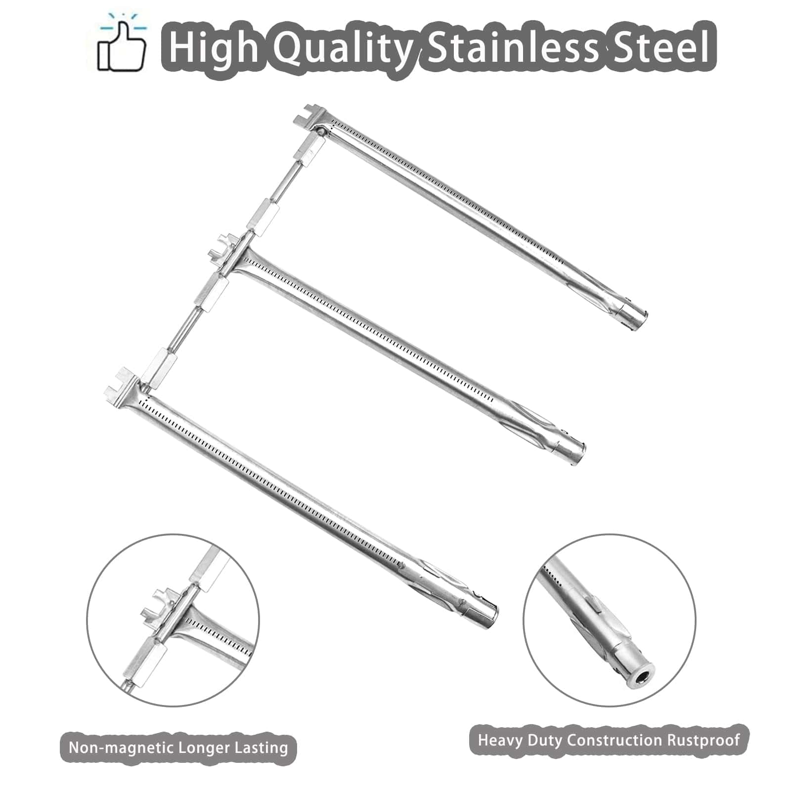 1. PERFECT FITS – Grill Replacement Parts fits Weber Spirit I 300 Series Gas Grill Models: Weber Spirit E-310, S-310, E-320, S-320, E-330, S-330, SP-330 (2013 – 2017) With Front-Mounted Control Panel. Fits Weber Spirit II 300 Series Gas Grill Models: Weber Spirit SP-310, SP320, SP-330 (2013 – Current Model Years) DON’T fit for models with side control panel. 2. PERFECT FITS – Grill Repair Kit Fits for Weber 46510001 46700401 47510001 46500401 47513101 46410674 46513101 46700574 46810001 46500401 47700401 46800401 47800401 49010001 45010001. 3. FLAVORIZER BARS – Dimension: 15.3″ x 2.6″ x 2.5″ (L x W x H). Package: 5 Pack Flavor Bars. Material: Porcelain Steel. Compatible with Part Number: Weber 7636. 4. GRILL BURNER – Dimensions: Left and right main burners 17 13/16″, The center main burner 17 3/4″, Crossover burner 16″. Burner Tube Set: includes 3 x main burners and 1 x crossover burner. Material: Stainless Steel, well-engineered and built to last, durable with better oxidation, corrosion and heat resistance. Compatible with Part Number: Weber 69787. 5. NOTE – Brand and Models are reference only. We Suggest That You Measure The Size Of Your Original Parts and Compare with Our Product Before You Order.