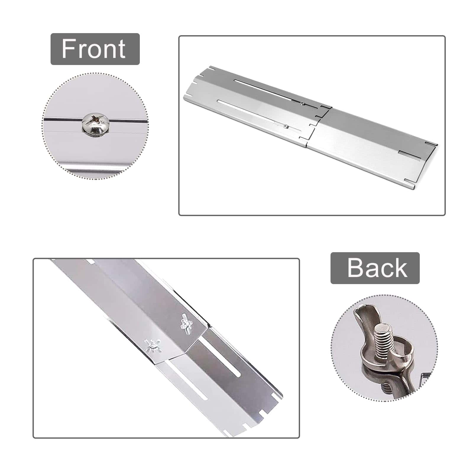 1. Placas de calor universales y ajustables: las placas de calor para parrillas de reemplazo están diseñadas para ajuste universal. Dos opciones de ensamblaje que puedes elegir. Si lo estás instalando hacia adelante, se puede extender desde 11.75″ hasta 21″ de longitud, 3.75″ de ancho. Si se instala al revés, se extiende de 11.75″ a solo 18.8″ de longitud.