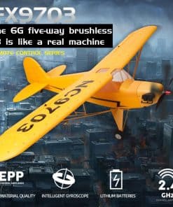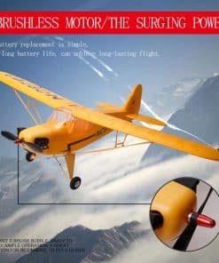 2. Motor potente: Este Avión J3 cuenta con Motor Brushless incorporado, envergadura del avión de 680 mm, pero el motor Brushless puede generar una gran potencia fácilmente para volar hacia arriba y girar a la izquierda/derecha. La velocidad de vuelo está entre 15~36 km/h.