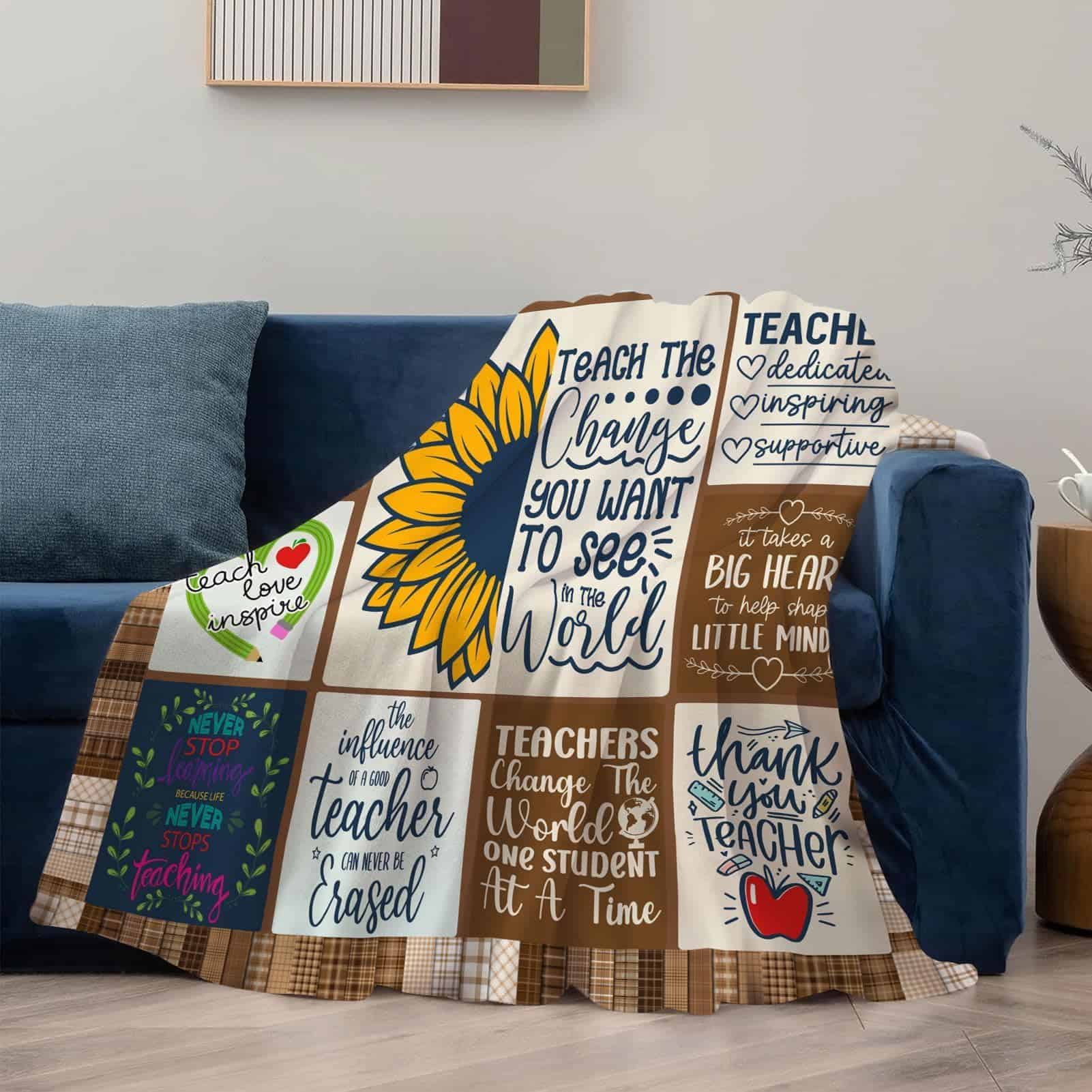 Presentamos nuestra Manta de Felpa de Regalos para Maestros, la manta de agradecimiento especial para maestros ideal. Envuelto en poliéster de microfibra premium al 100%, esta manta cuenta con una textura suave y suave que te mantiene cálido y acogedor. De tamaño generoso y extra esponjosa, esta manta es ideal para acurrucarse mientras ves tus películas o programas de televisión favoritos. La manta suave al tacto es ligera pero flexible, lo que la hace fácil de cuidar y perfecta para habitaciones con aire acondicionado. Nuestra manta de fácil cuidado es lavable a máquina con agua fría. Cuando no está en uso, también puede usarse como cojín de asiento o cojín de sofá, añadiendo un toque de comodidad a cualquier habitación. Esta manta versátil es el regalo perfecto para ese maestro especial que ha hecho una diferencia en tu vida. Celebra el arduo trabajo y dedicación de tu maestro con esta acogedora, cálida y esponjosa manta. Muéstrales cuánto son apreciados con nuestra Manta de Felpa de Regalos para Maestros. ¡Consigue la tuya hoy!