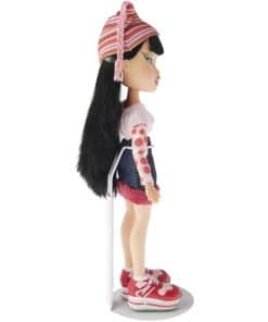 Cómo usarlo: Este soporte está diseñado para adaptarse a la mayoría de las muñecas de moda de 10″-12″, incluyendo las muñecas Barbie, Bratz, Ever After High, Monster High, Skipper y Jem. Para usarlo, coloca el broche de alambre alrededor de la cintura de tu muñeca o figura, y luego inserta la sección puntiaguda del alambre en la base del soporte. Ajusta hacia arriba o hacia abajo para soportar mejor tu muñeca o figura.