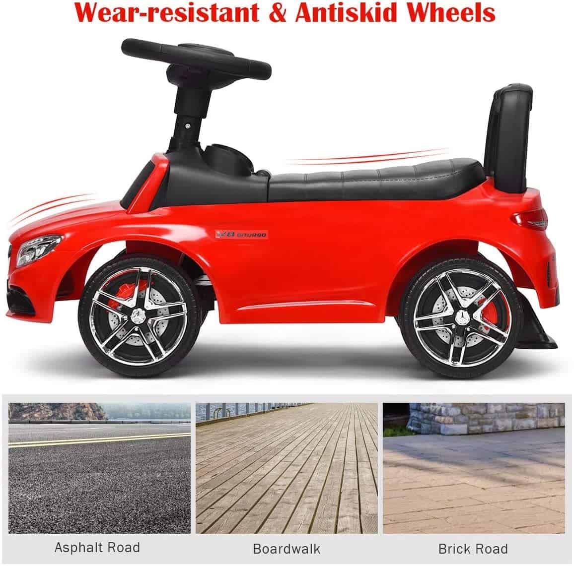 Es un exclusivo Coche de Carreras para Bebés 3 en 1 de Mercedes-Benz AMG. Su diseño de apariencia realista ofrece una apariencia auténtica del Mercedes-Benz AMG S65, un aspecto elegante y detalles de lujo. La estructura simple hace que este patinete de juguete sea fácil de jugar y mantener. El mango para caminar y el freno trasero anticaídas lo convierten en un atractivo andador. Además, si se ata una cuerda al anillo inferior, este coche de juguete se convertirá en un carrito de arrastre. Sus hijos también pueden tocar el botón en el volante y escuchar diferentes efectos de sonido y músicas. Además, las luces delanteras parpadearán con sonidos. La música y los sonidos animan a sus hijos a caminar o pasear por la casa. Obtenga este increíble coche deslizante de juguete y observe el crecimiento de sus hijos.