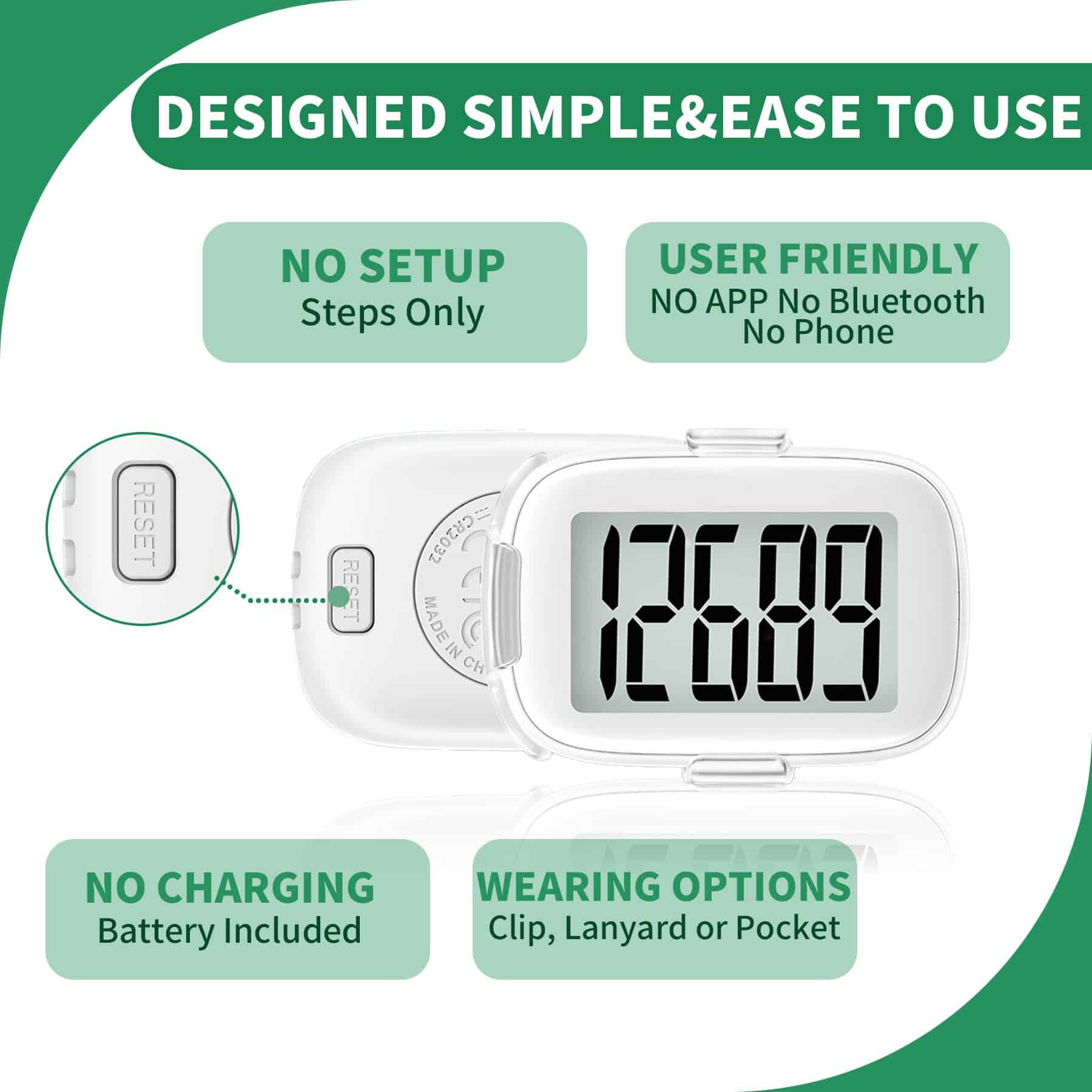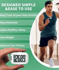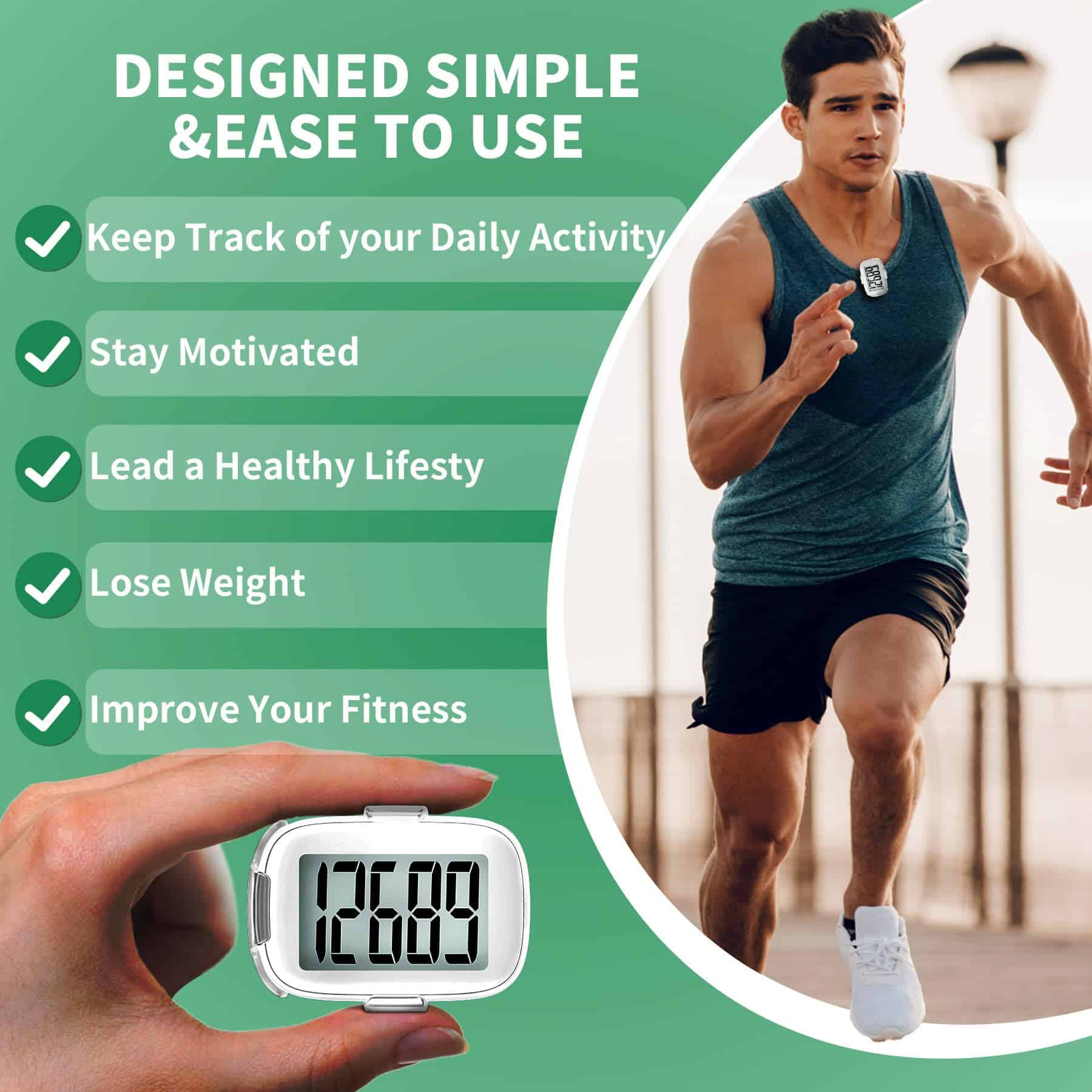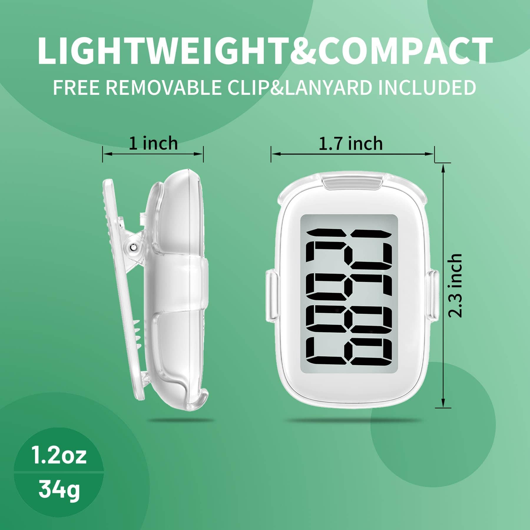 Podómetros 3D simples para un seguimiento preciso de pasos. Cuenta y muestra los pasos. No necesita configuración, simplemente retire la pestaña en la parte posterior para activar, instale el clip y listo. ¡Presione y mantenga presionado el botón de reinicio para borrar el recuento de pasos. Ideal para todos los niveles de condición física, jóvenes y mayores.