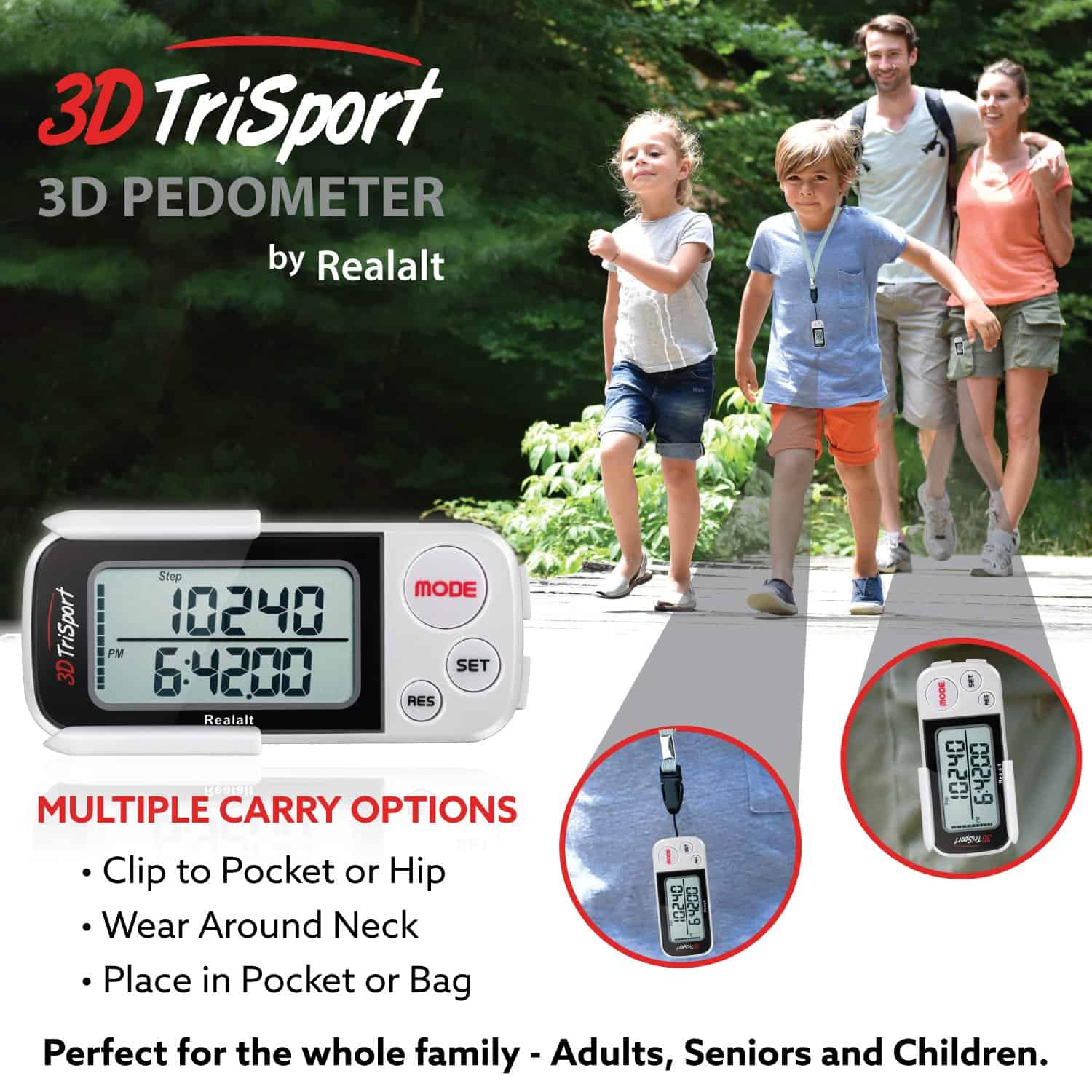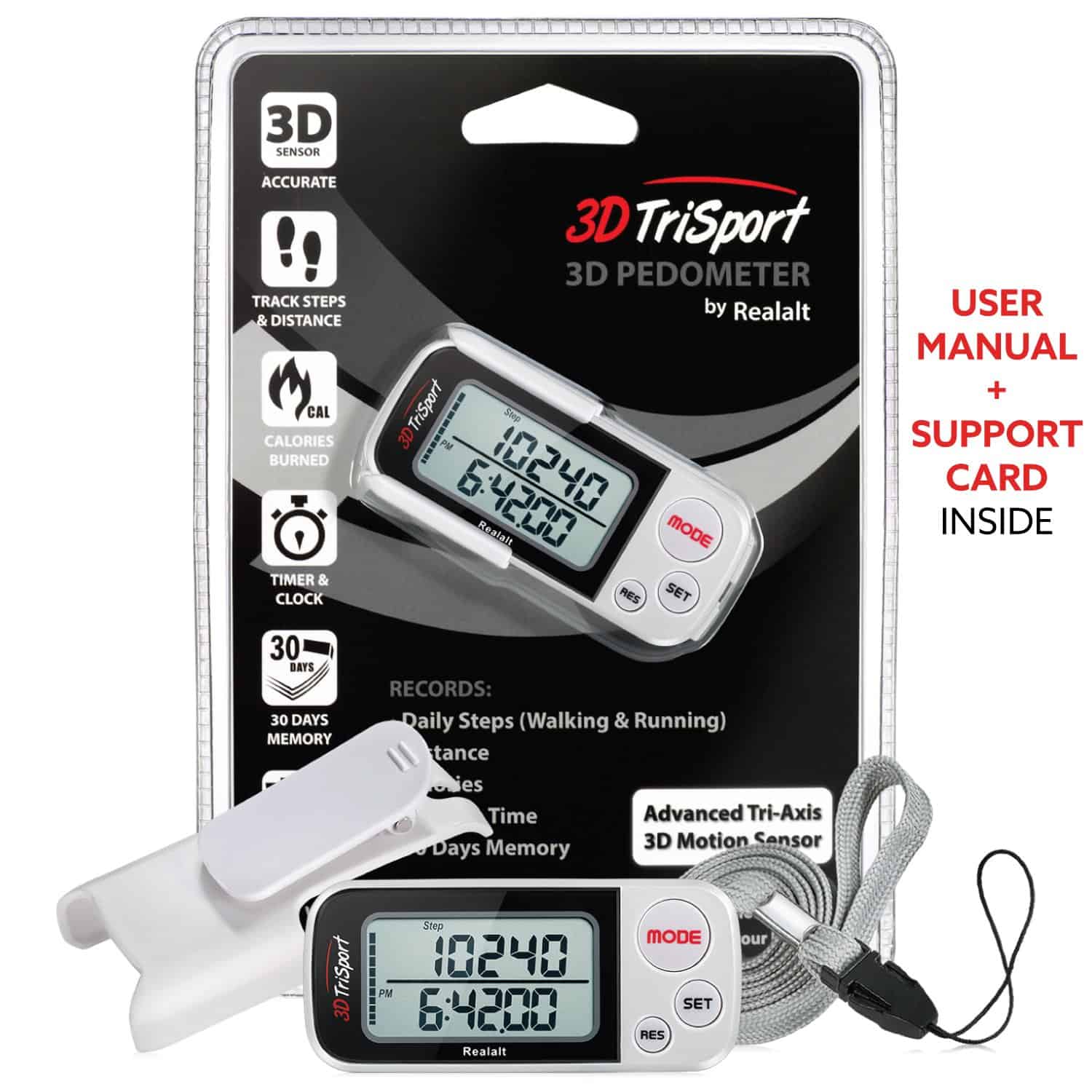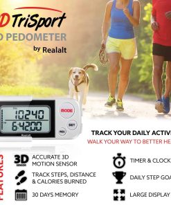 Podómetro Realalt 3DTriSport 3D con Clip, Correa y eBook,