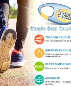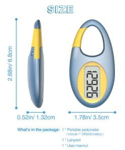 Podómetro Simple 3D, Contador de Pasos, Rastreador de Pasos con Llavero de Cuello/Mosquetón para Hombres Mujeres Adolescentes Adultos Mayores (Azul). El podómetro 3D portátil cuenta con un diseño de mosquetón que te permite utilizarlo de varias formas. Puedes colgar el podómetro en la bolsa de abordar, en el bolso, en el bucle del cinturón, atarlo a tus zapatos o sujetarlo en el borde del bolsillo. No ocupa espacio extra y es simple y conveniente de usar. El podómetro utiliza la última tecnología de sensor triaxial 3D para medir con precisión tus pasos, sin importar cómo lo lleves. No se requiere Bluetooth, ninguna conexión de aplicación o teléfono inteligente. Con función simple de conteo de pasos, no se requieren configuraciones complicadas. Su diseño amigable para el usuario lo hace fácil de usar para los ancianos y niños. Es compacto, ligero y fácil de llevar. La pantalla muestra de forma clara y sencilla tus pasos sin contenido adicional. La batería CR2032 incluida puede durar hasta un año. Si tienes algún problema con el producto, nuestro soporte al cliente estará encantado de ayudarte.