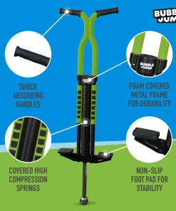 ¡Hemos rediseñado el pogo stick para que sea mejor que nunca! La construcción premium de metal con acolchado de espuma amigable para niños y duraderos muelles cubiertos de alta compresión ayudan a niños y adultos que pesan de 80 a 160 libras a generar saltos altos y mucha diversión! Para niños y adultos de 9 a 99 años. BENEFICIOS Y CARACTERÍSTICAS: Mangos ergonómicos de goma, Absorción de golpes de goma, Estructura de metal con espuma cubierta, Muelles de alta compresión cubiertos, Diseño duradero, No requiere ensamblaje, 4 opciones de colores divertidos, Almohadilla de pie antideslizante, 41 pulgadas de longitud, 11.5 pulgadas de ancho en los mangos y en las almohadillas para los pies. DIVERSIÓN ACTIVA AL AIRE LIBRE ¡Los pogo sticks parecen funcionar como magia, pero cuanto más fuerte seas y más fuerte saltes, más alto irás! ¡Eso ayuda a fomentar el movimiento que ayuda a que los cuerpos en crecimiento se vuelvan más fuertes, más rápidos y quemen energía! ¡Los niños mayores y los usuarios avanzados incluso pueden hacer trucos y movimientos especiales! MANTENTE SEGURO No uses este producto bajo la lluvia, en interiores o en superficies resbaladizas. Usa equipo de protección que incluya: cascos, rodilleras, coderas, muñequeras y siempre usa calzado con buen agarre como zapatillas y zapatos. Mamá y papá deben supervisar a los niños pequeños y su primer uso. LISTO PARA USAR Para empezar, simplemente elige entre nuestras opciones de colores amarillo, rojo, verde o gris. Una vez que llegue tu nuevo pogo stick, estará completamente ensamblado, sin partes o piezas móviles complicadas. Asegúrate de que la punta de goma inferior esté segura, elige una superficie dura al aire libre y ¡a saltar!