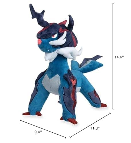¡Ve a Edge Sin Fin con Hisuian Samurott! Cuando eliges a Oshawott como tu primer Pokémon compañero en la región de Hisui, tiene el potencial de alcanzar su evolución final y convertirse en el Hisuian Samurott de tipo Agua y Siniestro! Esta forma de Samurott es más feroz en comparación con su contraparte en Unova, y como un adorable peluche de Pokémon, hará una adición turbulenta a tu colección en una estantería o escritorio. ¡Dimensiones aproximadas del artículo: 11.8 x 9.4 x 14.6 pulgadas (29.9 x 23.8 x 37 cm)! Materiales: Poliéster / espuma de poliuretano / SBS. Instrucciones de cuidado: Lavar solo en superficie.