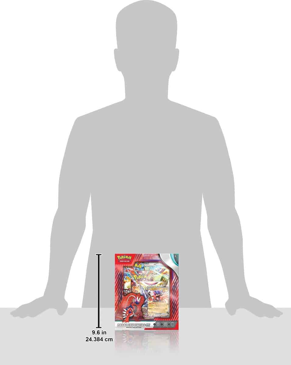 En esta Exclusiva de Vacaciones del 2023, presentando una caja de doble cara, se te presenta la oportunidad de conocer a Pokémon ex del Pasado, Presente y Futuro. ¡Pide los poderes de dos Pokémon Legendarios ex del pasado y futuro, y celebra el presente con una increíble carta de gran tamaño con Cyclizar ex. En esta colección especial, Koraidon ex y Miraidon ex aparecen como cartas de foil doble raras que están listas para entrar en juego, y aún más cartas de Pokémon y Entrenador aparecen dentro de una pila de paquetes de refuerzo. Regala el mundo de Pokémon al jugador o coleccionista de Pokémon en tu vida con esta exclusiva Colección Especial Pokémon TCG: Paradox Powers ex.