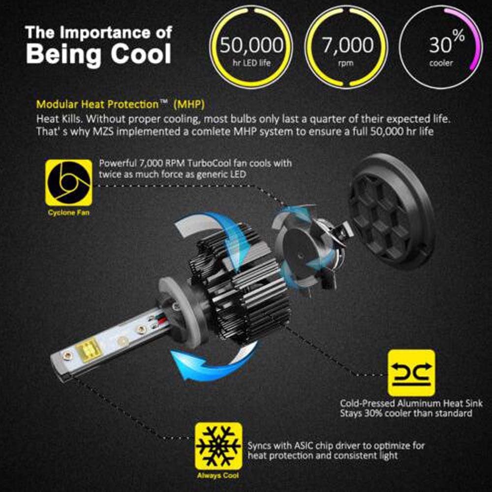 Special powerful turbo fan 7000rpm / 50000hrs lifespan. Alloy aluminum is good for transfer of heat and firmer. Excellent led lighting design, the seams have silicone. Best led make high brightness lighting. Imported exact electronics, best quality’s guarantee. High power: top of LED, 60w per pair. High luminous efficacy Flux: Up to 7600lms per set. Wide-range voltage, constant current control, anti-interference circuit design. Super brightness 200% brighter than your stock Halogen headlights. Low power consumption. Long range: 6000K color temperature and 200m light range. Easy installation: plug and play. Long operation life: Up to 50,000 hours Service Life.