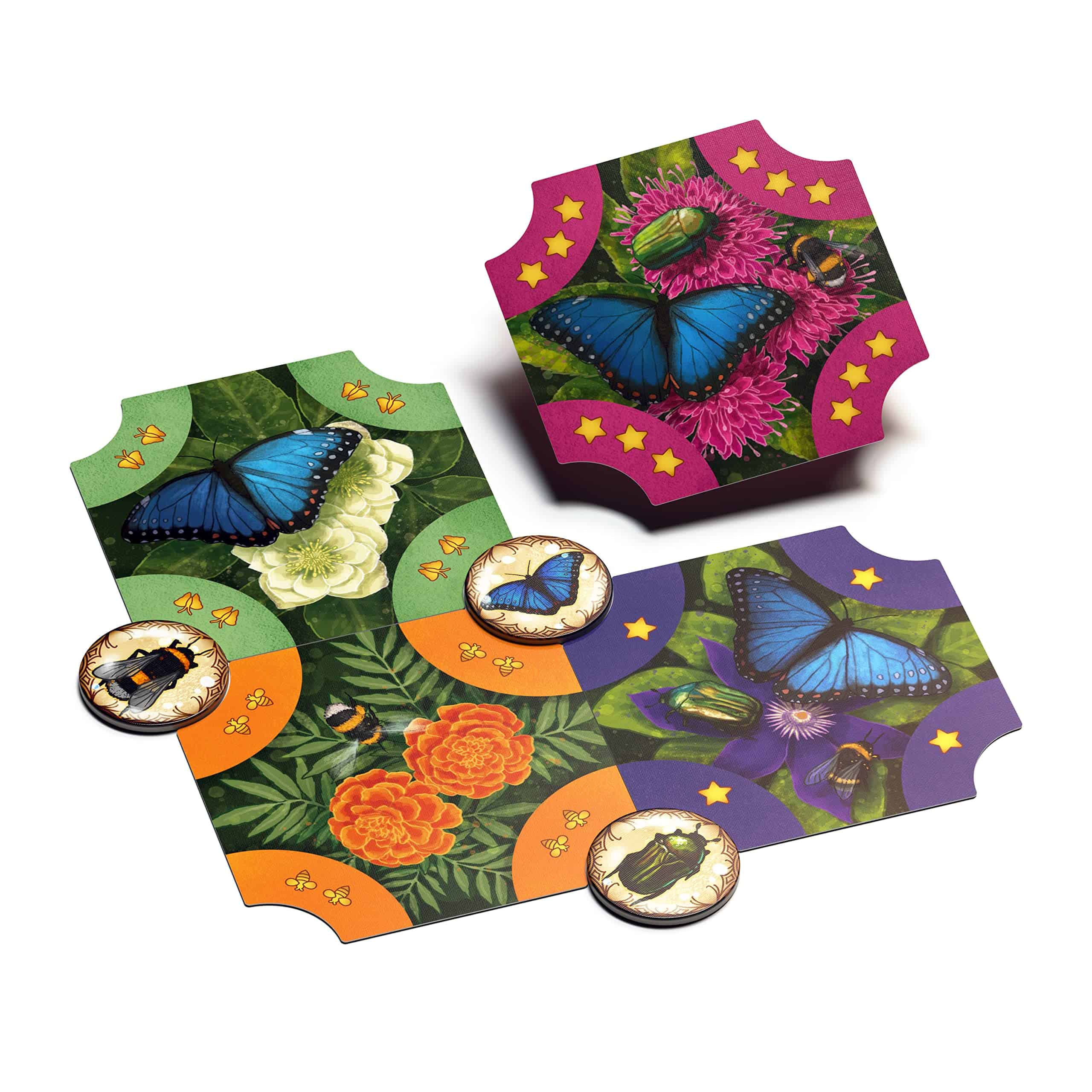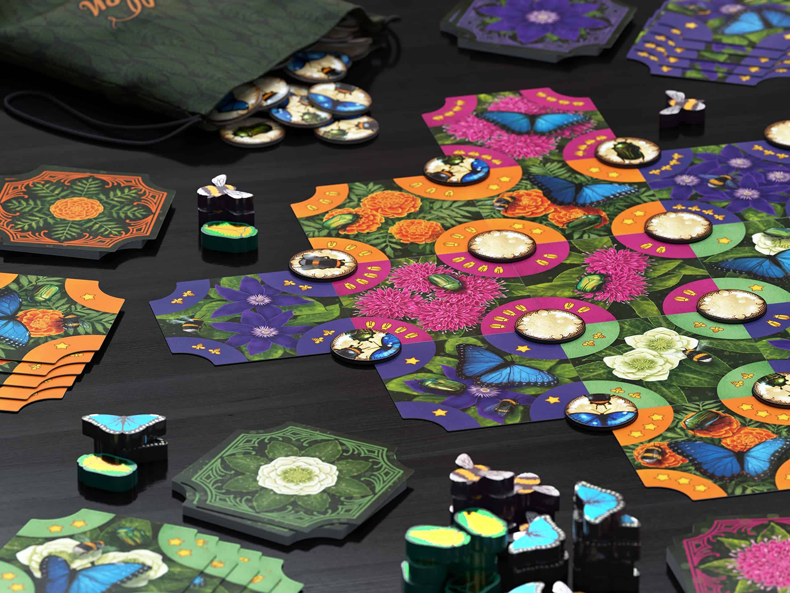 Reiner Knizia tiene dos mecánicas interesantes que realmente le dan a este juego su estructura. La regla de «atracción» garantiza un juego altamente interactivo, y la puntuación de fin de juego te hará prestar una atención adicional a qué tipos de insectos estás recolectando.