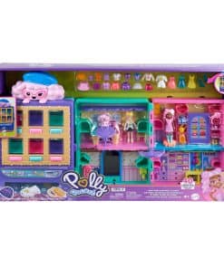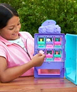 El estilismo es extra dulce con el Polly Pocket Candy Style Fashion Drop — la colorida máquina expendedora dispensa moda y se despliega para revelar un playset con dos pisos, cuatro habitaciones y más de 35 piezas de muebles, ropa y accesorios! Dos muñecas Polly de 3 pulgadas y un poodle adorable están listos para comprar. Los niños pueden elegir un conjunto de muñeca de la máquina expendedora, probárselo en el vestidor, luego arreglarse en el tocador, compartir un helado en la cafetería, y luego regresar a la máquina expendedora para más diversión con la moda. Con temáticas de animales y comida favoritos de los niños, el playset es un regalo ideal para edades de 4 años en adelante. Los colores y decoraciones pueden variar.
