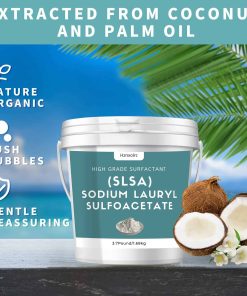 Nuestro polvo de SLSA de 3.7 libras para hacer bombas de baño es una opción orgánica y de alta calidad para sus necesidades de cuidado personal. Extraído de aceites de Coco y Palma, este surfactante cumple con el estándar de cosméticos orgánicos y naturales de ECOCERT. Con excelentes propiedades de formación de espuma, este polvo de SLSA Lauryl de Sodio creará burbujas asombrosas en su baño, energizándolo con una fragancia refrescante. Además, es suave en la piel, ideal para limpiadores faciales y corporales suaves, especialmente para pieles sensibles. Descubra los múltiples usos de este polvo, que es perfecto para hacer diferentes productos caseros para el baño, como trufas de baño, bombas de baño efervescentes, champús en crema, champús sólidos y exfoliantes corporales. Con nuestro compromiso de satisfacción del cliente, ofrecemos una garantía de devolución de dinero si no está satisfecho con nuestro producto. Contáctenos por correo electrónico si tiene alguna pregunta.