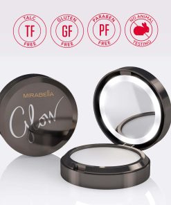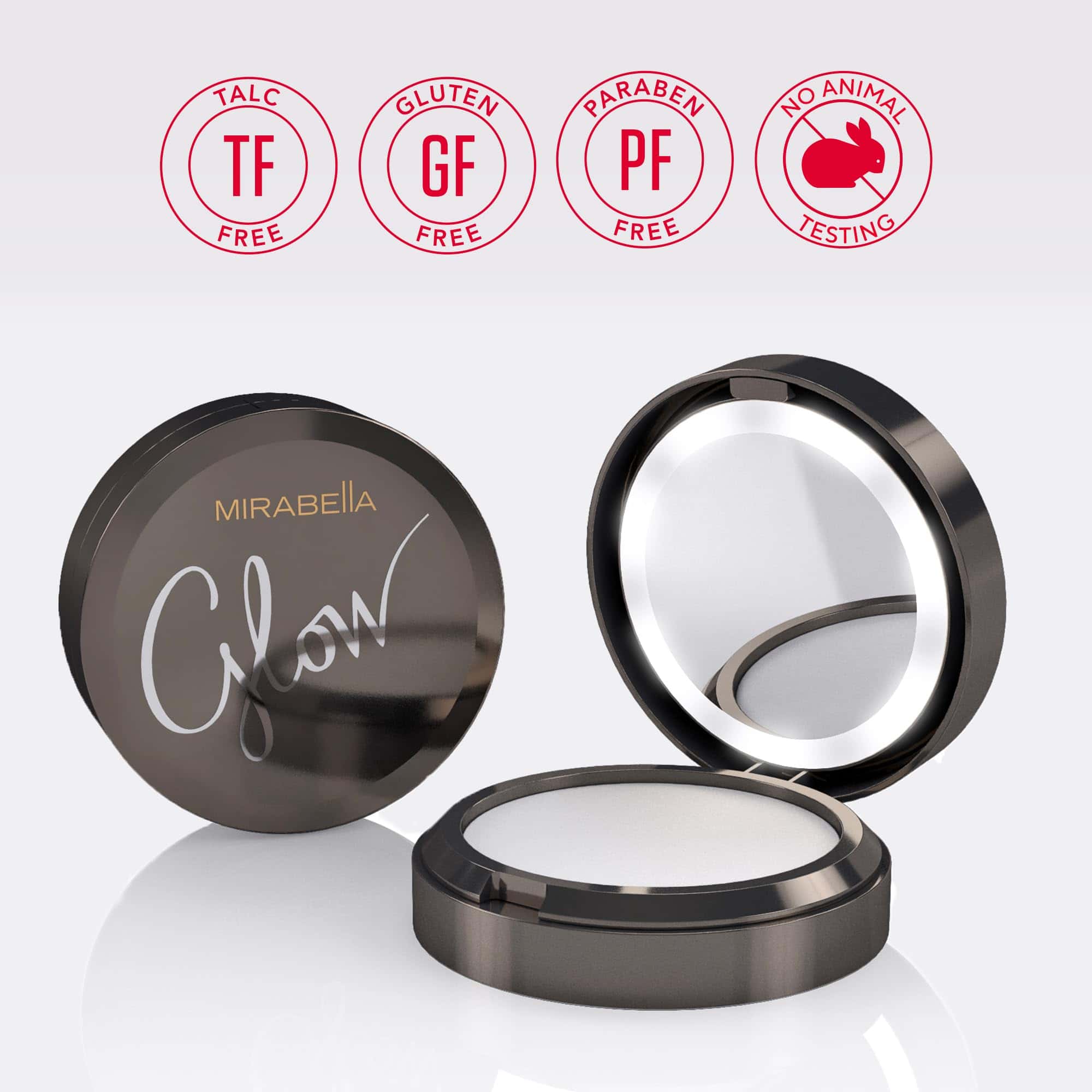 1. Polvo Perfeccionador: El Polvo Universal GLOW de ácido hialurónico es un polvo matificante innovador para todo tipo de piel de Mirabella. La superficie brillante e imperfecciones son expertamente difuminadas por este polvo compacto. El toque final perfecto para tu rutina diaria de maquillaje, GLOW está formulado con antioxidantes para proteger contra los efectos nocivos de la luz azul de dispositivos tecnológicos y la contaminación diaria.