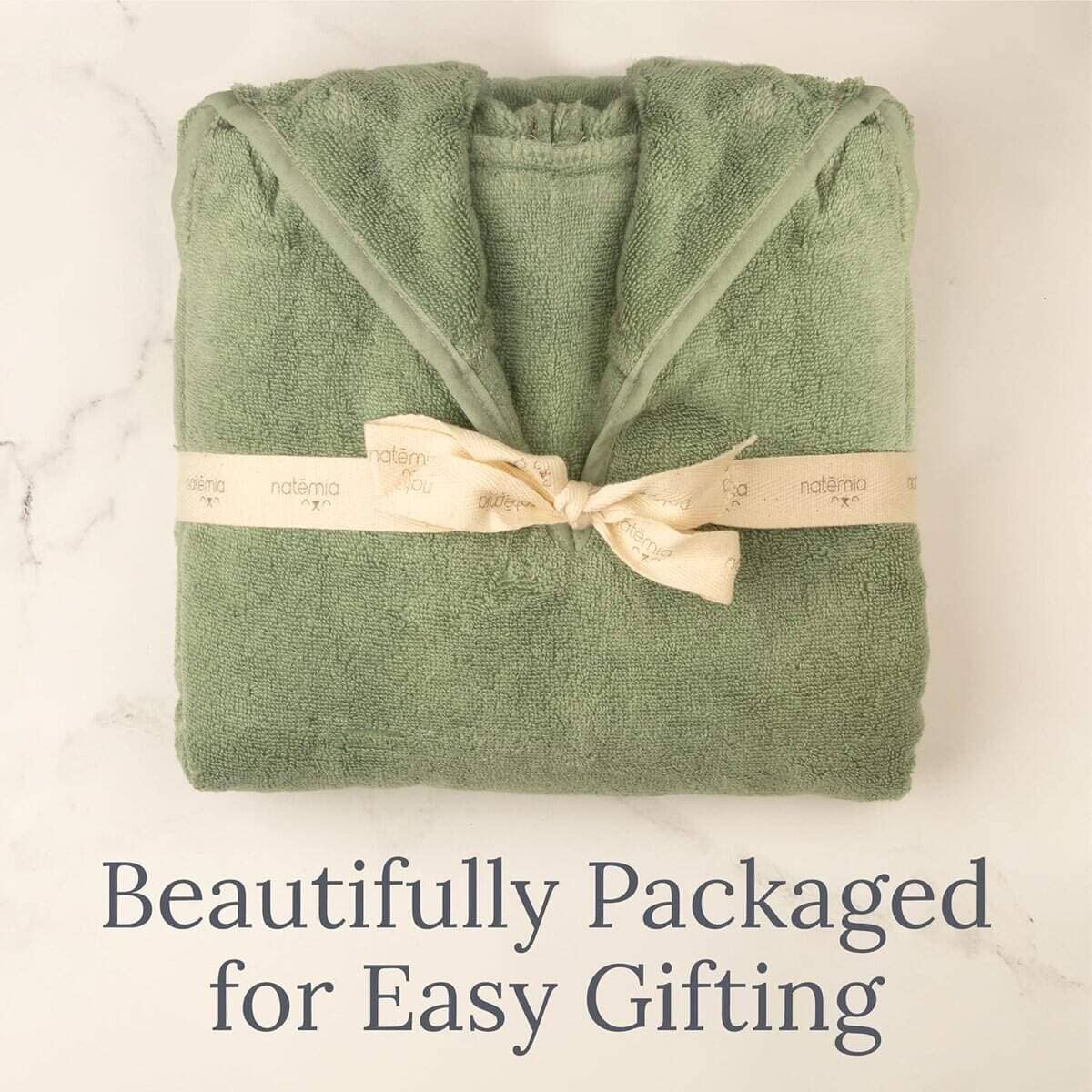 4. HACE UN REGALO PERFECTO – Estos ponchos con capucha vienen en nuestro empaque azul característico de Natemia. ¡Perfecto para regalar a un amigo o para comprar para tu dulce angelito!.