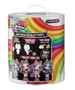 ¡Haz slime mágico de unicornio con Poopsie Slime Surprise! ¡Con un poco de magia y brillo de unicornio, puedes personalizar el slime de unicornio y transformarlo múltiples veces! ¡Cuando lo necesitas guardar, almacena el slime para diversión mágica en cualquier momento! ¡El unicornio sorpresa de poopsie crea slime mágico cada vez que lo alimentas y lo sientas en su potty brillante, ella crea sorpresas coleccionables de slime de unicornio! ¡Transforma tu slime de unicornio una y otra vez con magia de unicornio! ¡Más de 20 sorpresas mágicas incluidas con cada unicornio sorpresa! ¡Cuatro unicornios para coleccionar! ¿Desenrollarás a Rainbow Bright Star u Oops Starlight?
