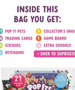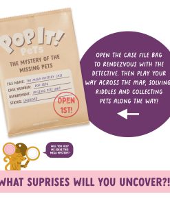 ¡Te encantó la Temporada 1, ahora prepárate para aún más mascotas más lindas y locas para coleccionar, intercambiar y amar con la Temporada 2 de Pop It! Pets! Asegúrate de usar ambas manos para agarrar este MEGA PACK! Estas adorables mascotas vienen en bolsas ciegas holográficas que contienen más de 70 sorpresas. ¡Nuestros juguetes Pop It! Pets! han conquistado el mundo del juego de fidget y sensorial, llevando alegría ilimitada y beneficios cognitivos a niños, niños pequeños y preescolares por igual. Adéntrate en un mundo caprichoso de exploración táctil mientras nos sumergimos en las características cautivadoras y las infinitas posibilidades de nuestros juguetes Pop It en forma de personajes. ¡Completa tu colección de Pop It! Pets de la Temporada 2 con el set de misterio Mega limitado de Pop It! Pets! 4 mascotas han desaparecido de cada pueblo, y el Detective Squeaks está en el caso, ¡pero necesita tu ayuda! ¿Puedes descifrar los 30 mini acertijos, resolver 5 mega misterios, encontrar las 21 nuevas mascotas exclusivas, reconectar los pueblos y salvar el día? ¡Hay mucho por explorar en el interior, qué sorpresas crees que encontrarás?