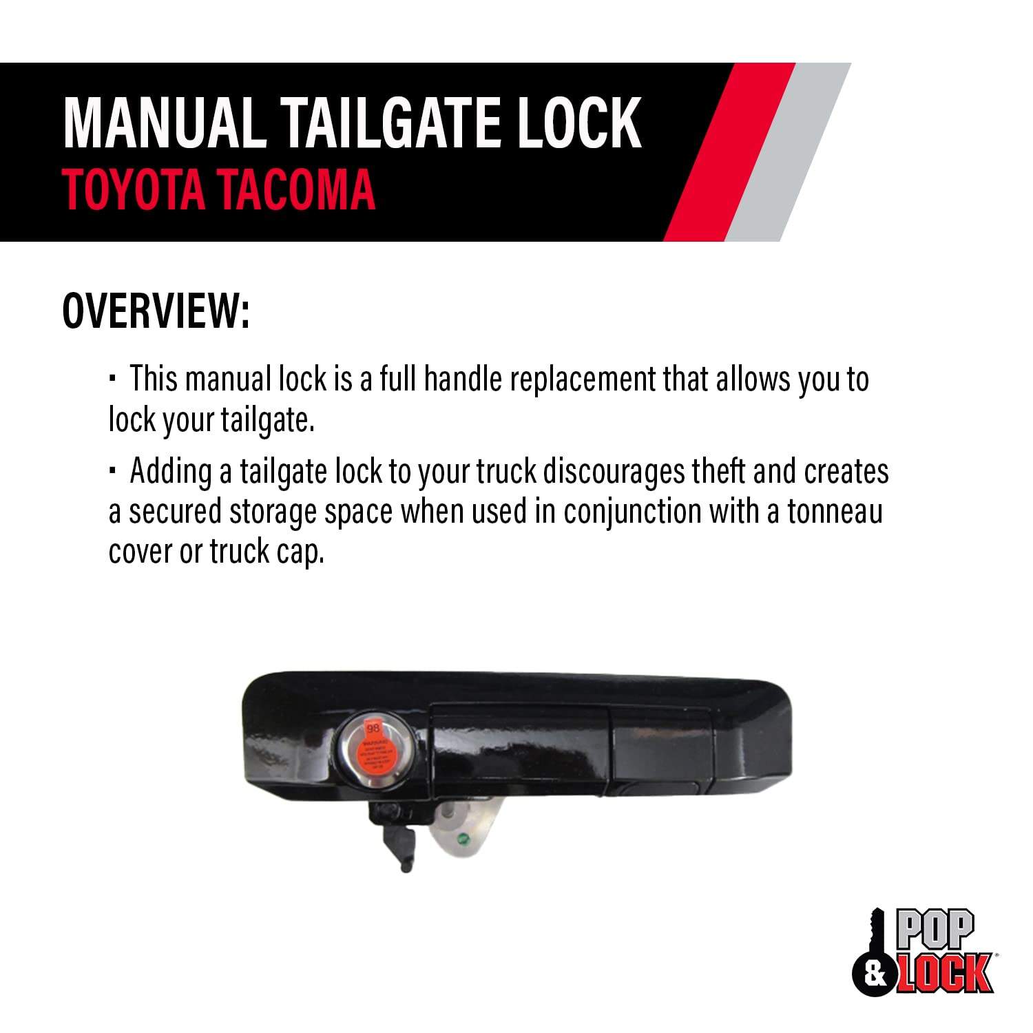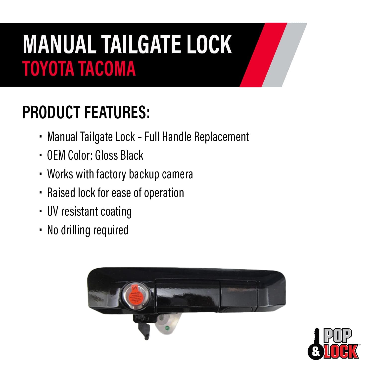 Pop & Lock PL5410 Gloss Black: Cerradura de cola manual con