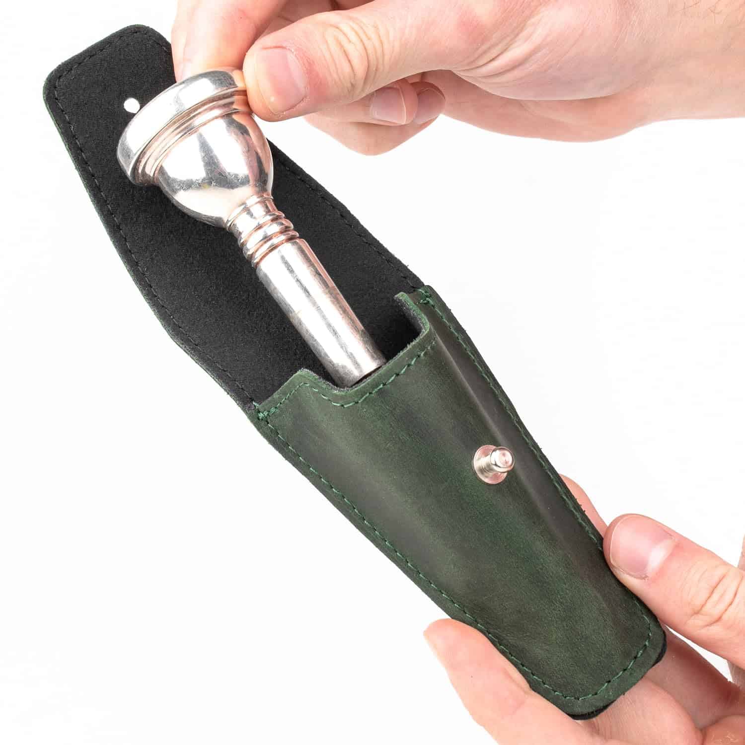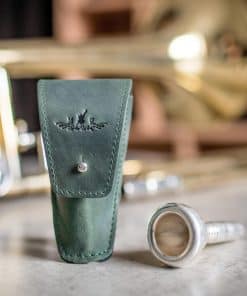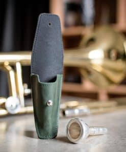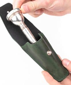 Hemos diseñado esta bolsa individual para boquilla de trombón/eufonio tanto visualmente atractiva como funcional. El cierre de botón te proporciona fácil acceso a la boquilla cada vez que la necesites. La presilla para cinturón de cuero en la parte trasera te permite llevarla cómodamente en tu cinturón y tener acceso a tu boquilla durante conciertos. El revestimiento suave en el interior protege la superficie de tu accesorio y absorbe la humedad.
