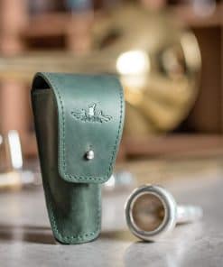 Nuestra bolsa de cuero es una solución práctica para el almacenamiento y transporte confiable de tu boquilla de trombón o eufonio. Hecha a mano con cuero genuino, combina una larga vida útil y una protección de alto nivel. El cuero conserva su calidad por años, sirviendo como una barrera confiable para la boquilla de trombón o eufonio contra abolladuras y rayones. Además, el cuero nunca pasa de moda, brindándote un accesorio siempre moderno y llamativo.