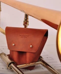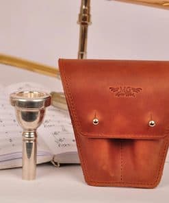 Nuestro estuche de cuero está diseñado para mantener dos boquillas de trombón o eufonio y es perfecto para el uso diario y los viajes. Al estar hecho de cuero genuino, ofrece una larga vida útil y una protección de alto nivel para tus accesorios. Además, el cuero nunca pasa de moda, por lo que tienes la oportunidad de mantenerte a la moda.