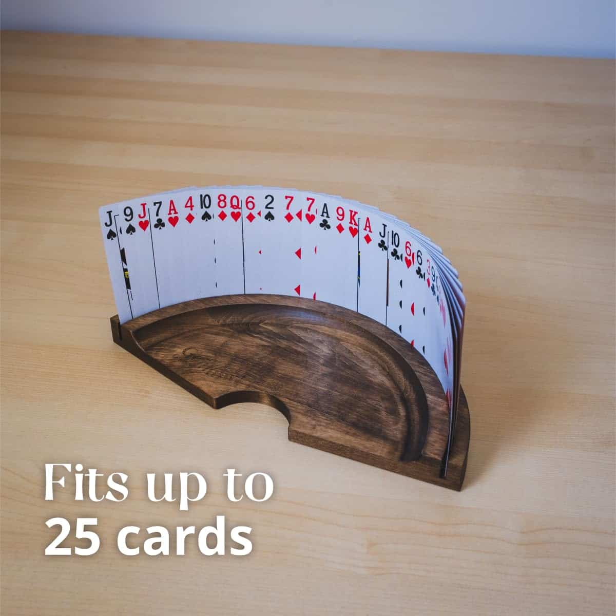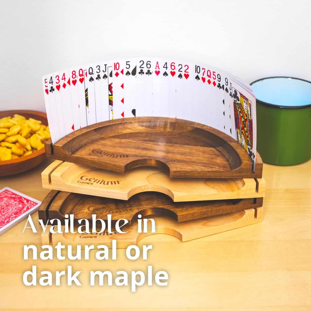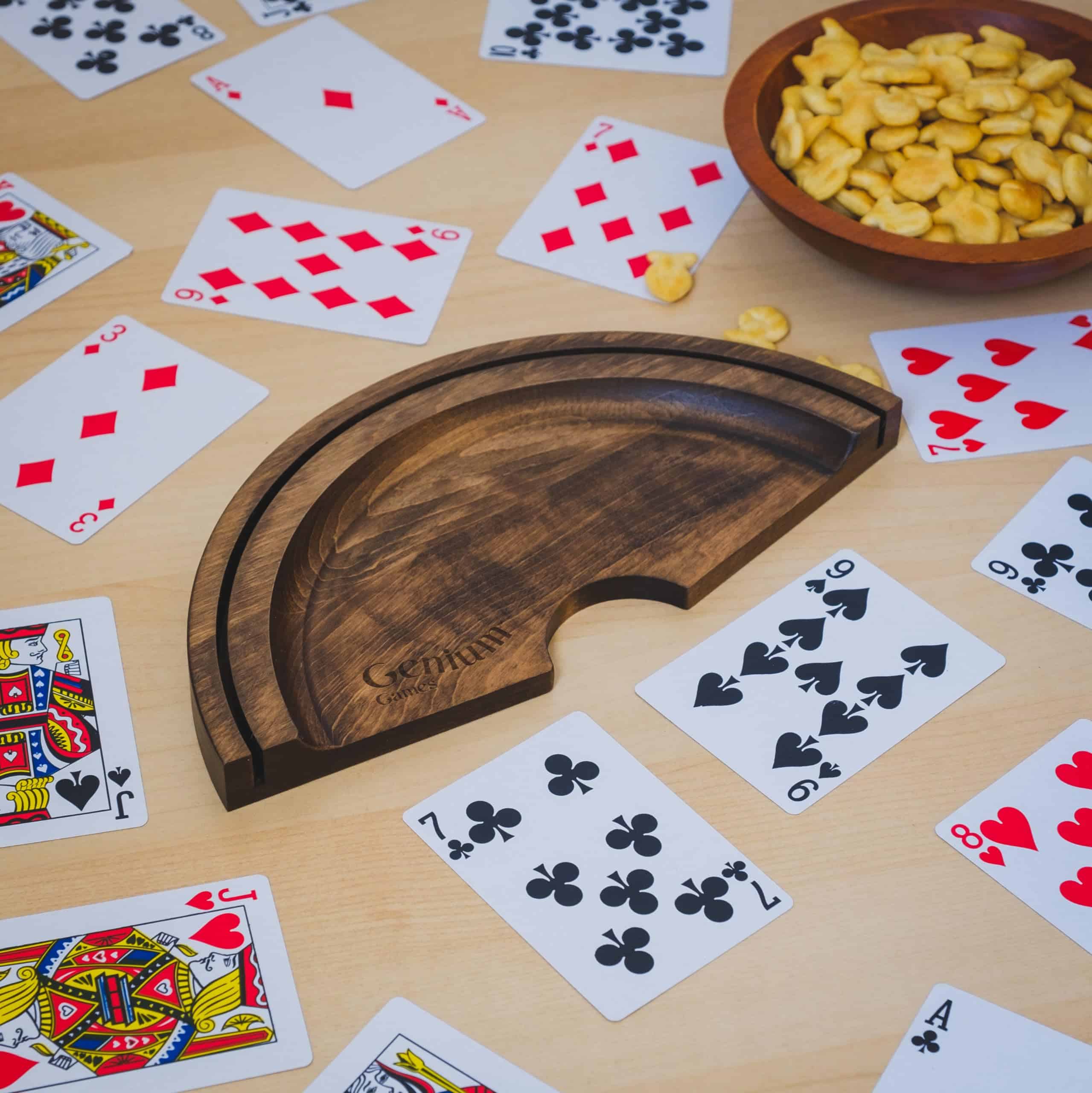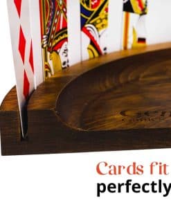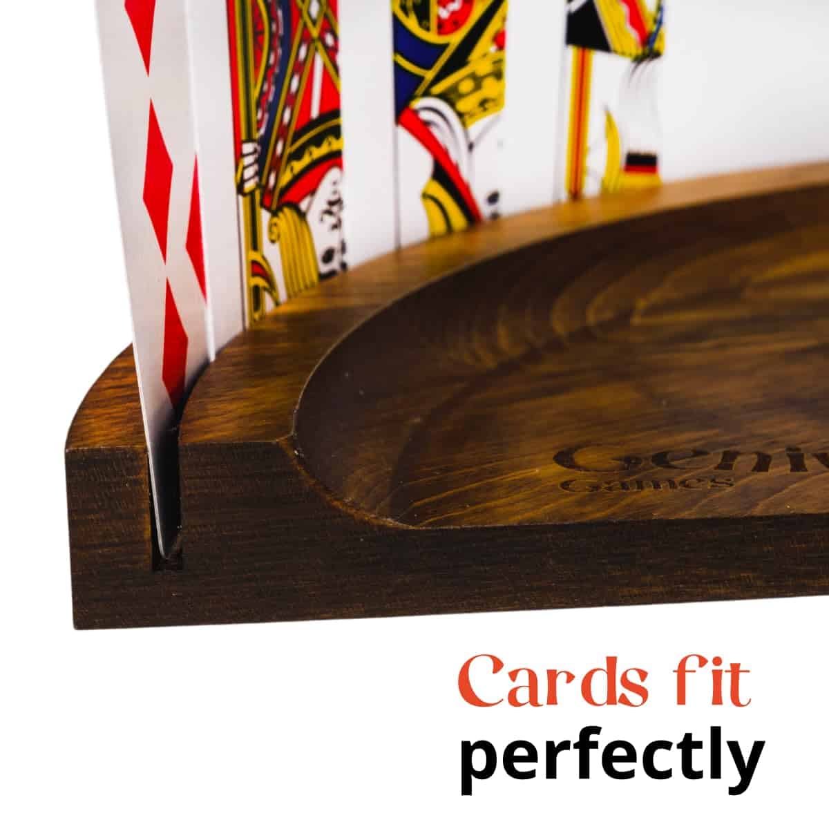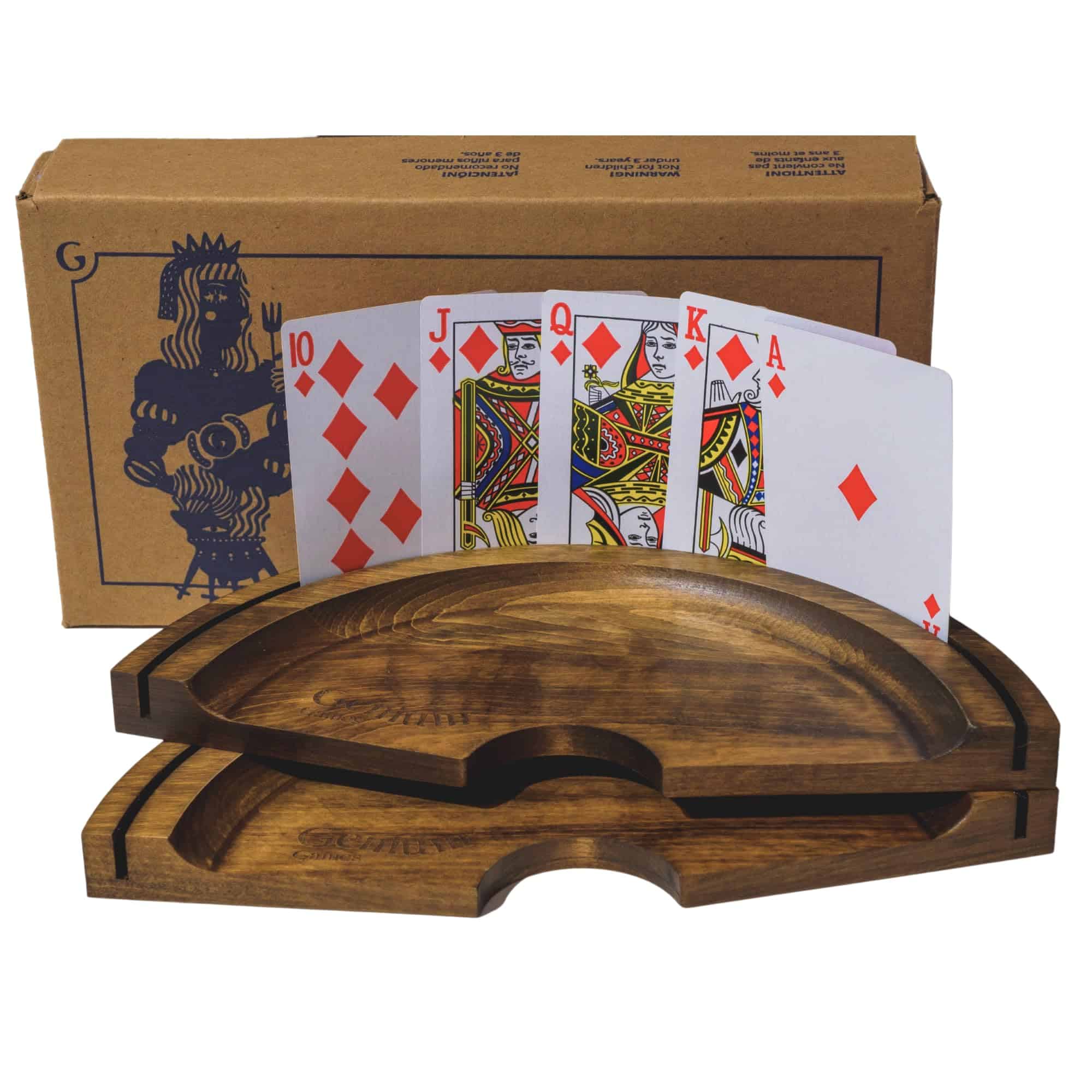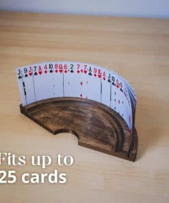 Elaborado con precisión y cuidado, Genium Games presenta con orgullo nuestro Porta Cartas de Madera, un accesorio esencial para cualquier entusiasta de los juegos de cartas. Este porta cartas elegante está diseñado para contener de manera segura hasta 25 cartas, lo que lo hace perfecto para una amplia gama de juegos de cartas y garantiza que jugadores de todas las edades puedan disfrutar de sus juegos favoritos sin la molestia de manejar una mano llena de cartas. Nuestro porta cartas no es solo un porta cartas cualquiera; es una herramienta versátil que se adapta a todos, desde niños que recién aprenden los juegos de cartas hasta adultos que aprecian una solución manos libres para mejorar su experiencia de noche de juegos. Es especialmente beneficioso para personas mayores o individuos con artritis, ofreciendo comodidad y facilidad al eliminar la necesidad de sostener cartas durante períodos prolongados. Diseñado con una forma curvada hermosa, este porta cartas no solo sirve su propósito funcional, sino que también agrega un toque de sofisticación a tu juego. La curvatura está pensada para brindar tanto atractivo visual como practicidad, haciendo que las cartas sean fácilmente visibles para el jugador y fáciles de recoger cuando llegue el momento de hacer un movimiento. Fabricado en madera certificada FSC, este porta cartas es un testimonio del compromiso de Genium Games con la durabilidad y la sostenibilidad. Su construcción de madera no solo garantiza un producto duradero, sino que también contribuye a una estética clásica que complementa cualquier sala de juegos, sala de estar o reunión social. Este producto no es solo para el disfrute individual; viene en un set de 2, lo que lo convierte en un regalo ideal para amigos o familiares que comparten el amor por los juegos de cartas. Ya sea para un niño que está desarrollando sus habilidades en juegos de cartas, un adulto que ama organizar noches de juegos, o un adulto mayor que busca una forma más accesible de disfrutar su pasatiempo favorito, este porta cartas está diseñado para mejorar la experiencia de todos.