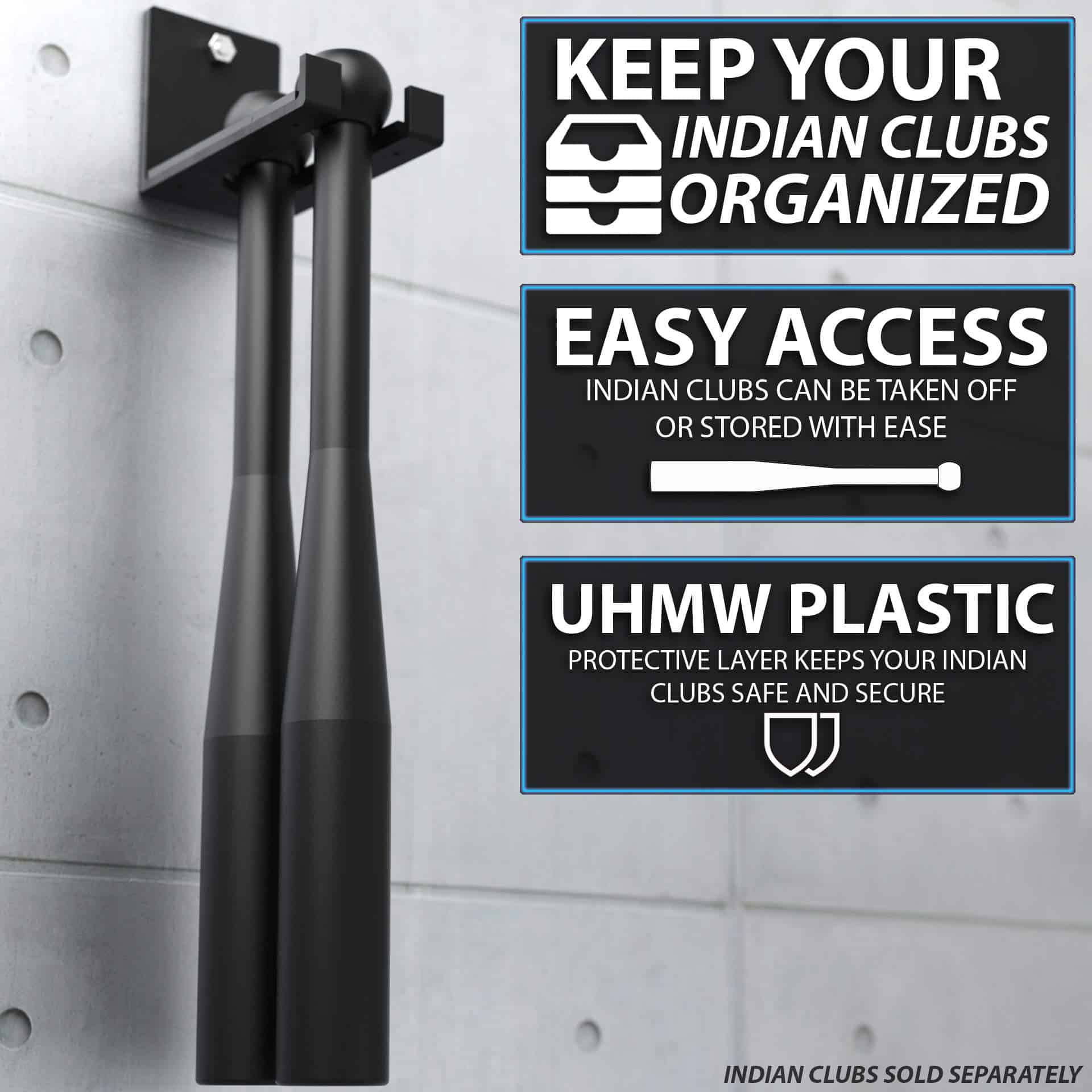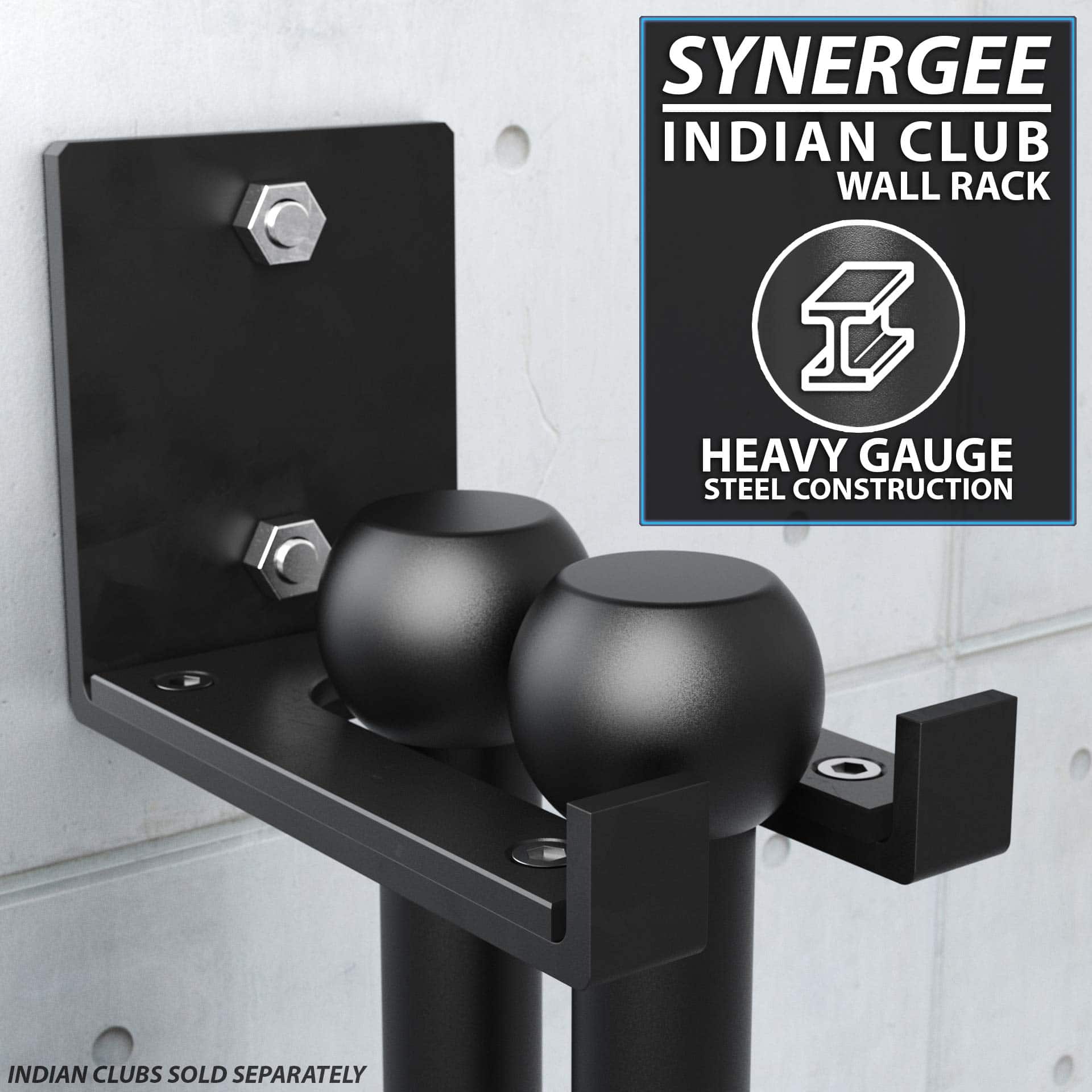 1. OPTIMIZACIÓN DEL ESPACIO ¡Coloca tus Clubes Indios en un porta fácil de acceder y fuera del camino para aprovechar al máximo tu espacio de entrenamiento! ¡El Porta Clubes Indios Synergee almacenará tus clubes de manera eficiente sin quitar espacio de tu área de entrenamiento! ¡Puede sostener 2 Clubes Indios Synergee de cualquier peso!