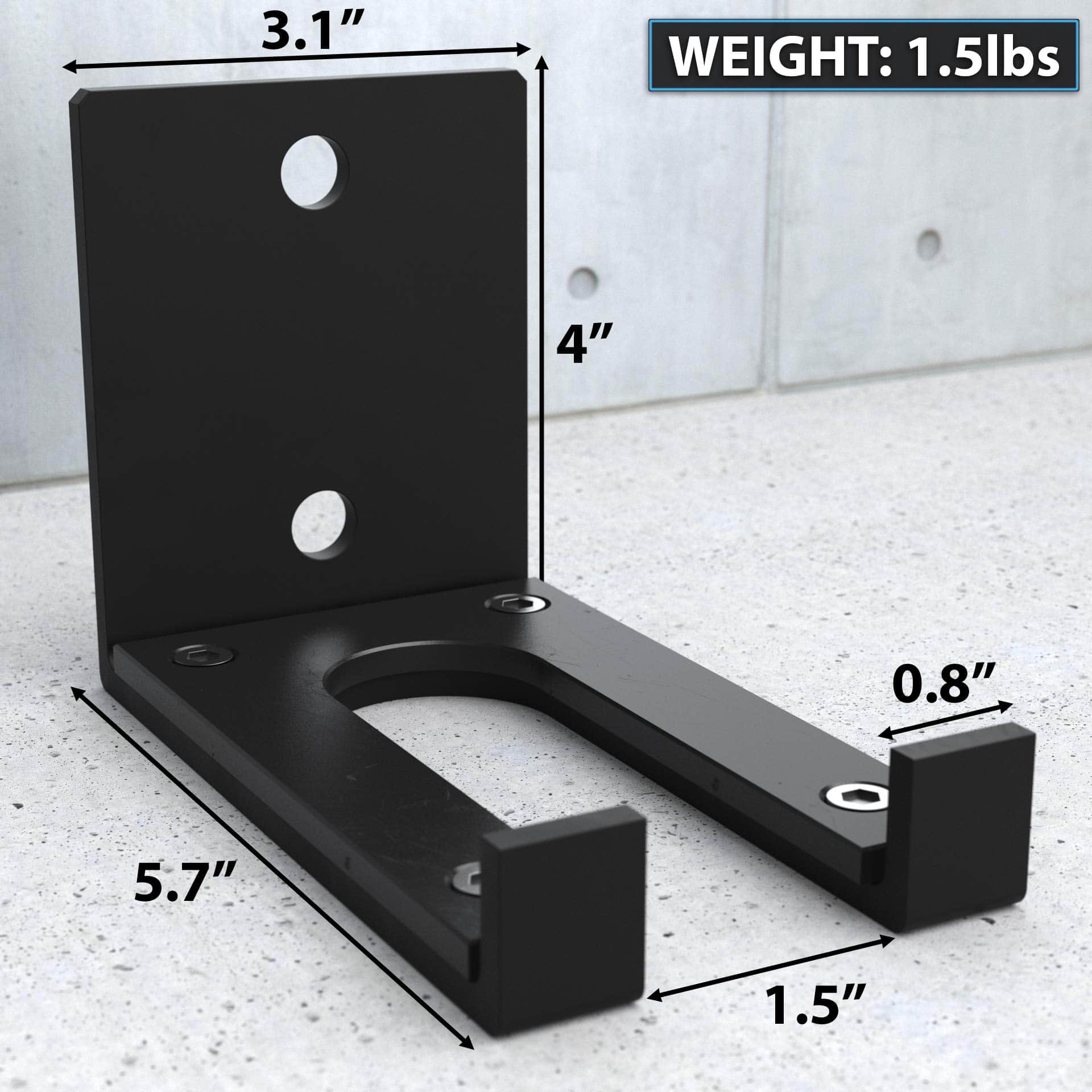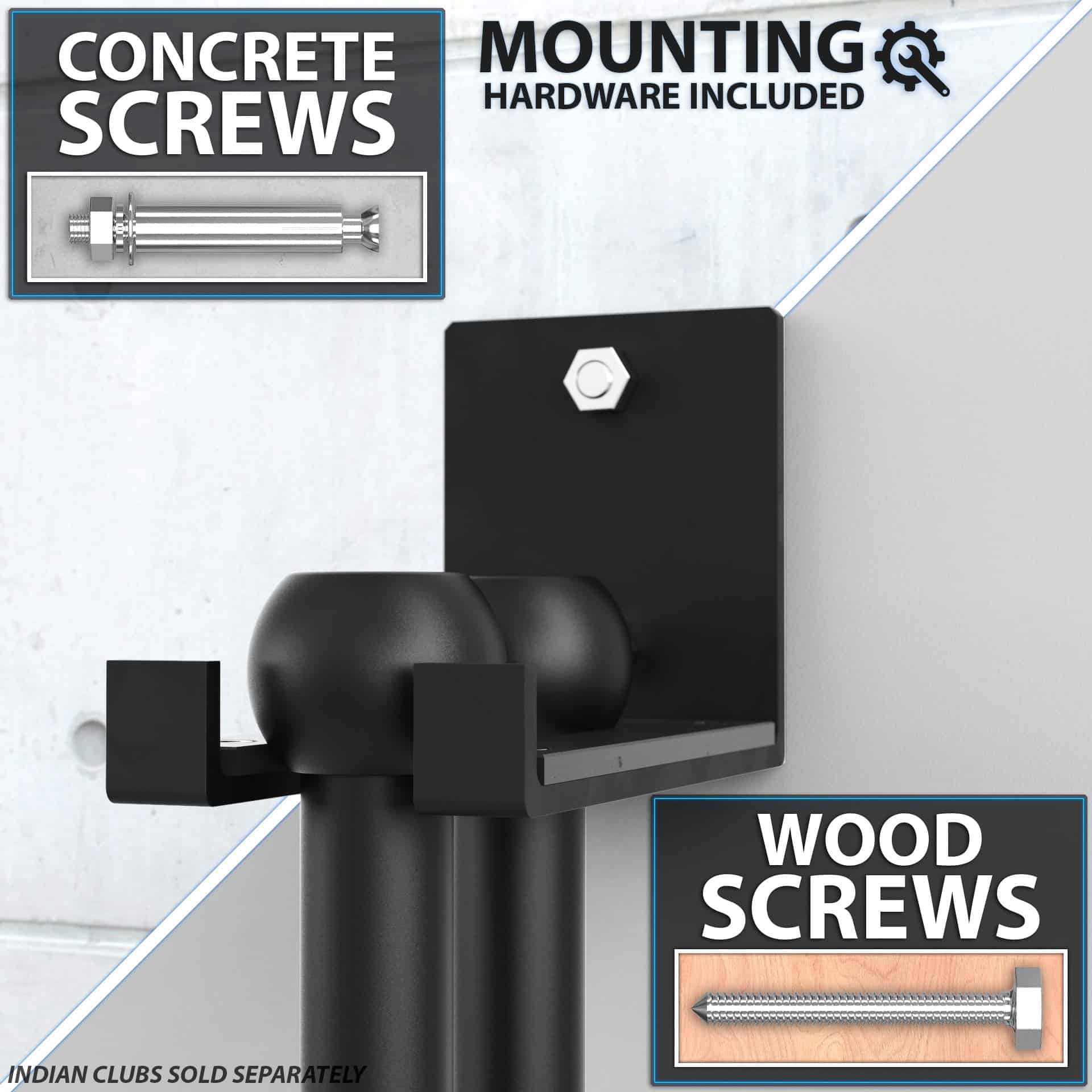 4. ¿QUÉ VIENE EN EL PAQUETE? El Porta Clubes Indios se monta en la pared con un soporte de 4″ x 3.1″, y se extiende con una repisa de 5.7″ de largo para sostener tus Clubes. Construido con acero de 4.5 mm, acabado con recubrimiento de polvo negro, y tiene un tope de plástico para proteger tus barras del contacto de metal con metal. Este Porta puede sostener 2 Clubes Indios Synergee de cualquier peso y tiene una capacidad máxima de peso de 60 lbs.