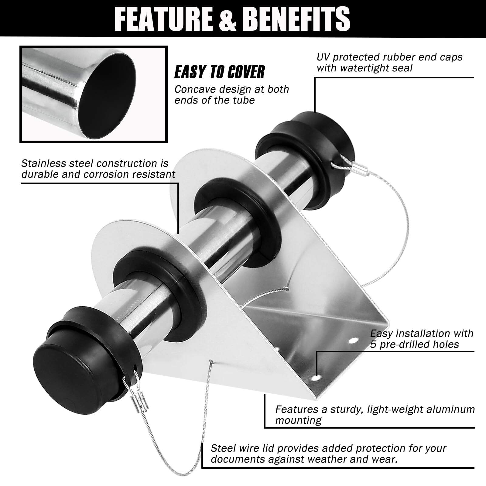 2. DISEÑO DURADERO: Fabricado con un cuerpo tubular de acero resistente y ligero y montaje de aluminio duradero. Garantiza durabilidad y longevidad en diferentes entornos. La tapa de alambre de acero proporciona protección adicional para tus documentos contra el clima y el desgaste.
