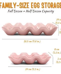 1. Bandeja de huevo de docena de cerámica – Este organizador de bandeja de huevos viene con 12 espacios para huevos que son del tamaño justo para contener huevos de tamaño estándar de pollo. Perfecto para usar como contenedor de huevos duros, plato de huevos de cerámica, porta huevos de refrigerador o porta huevos de mostrador.