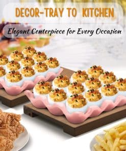 3. Bandeja decorativa y versátil de cerámica para servir: soporte de exhibición ideal para mantener huevos duros, mini aperitivos y también puede usarse como una elegante bandeja para servir para dispensador de huevos de Pascua de pollito clásico o huevos teñidos / pintados en una celebración de Pascua.