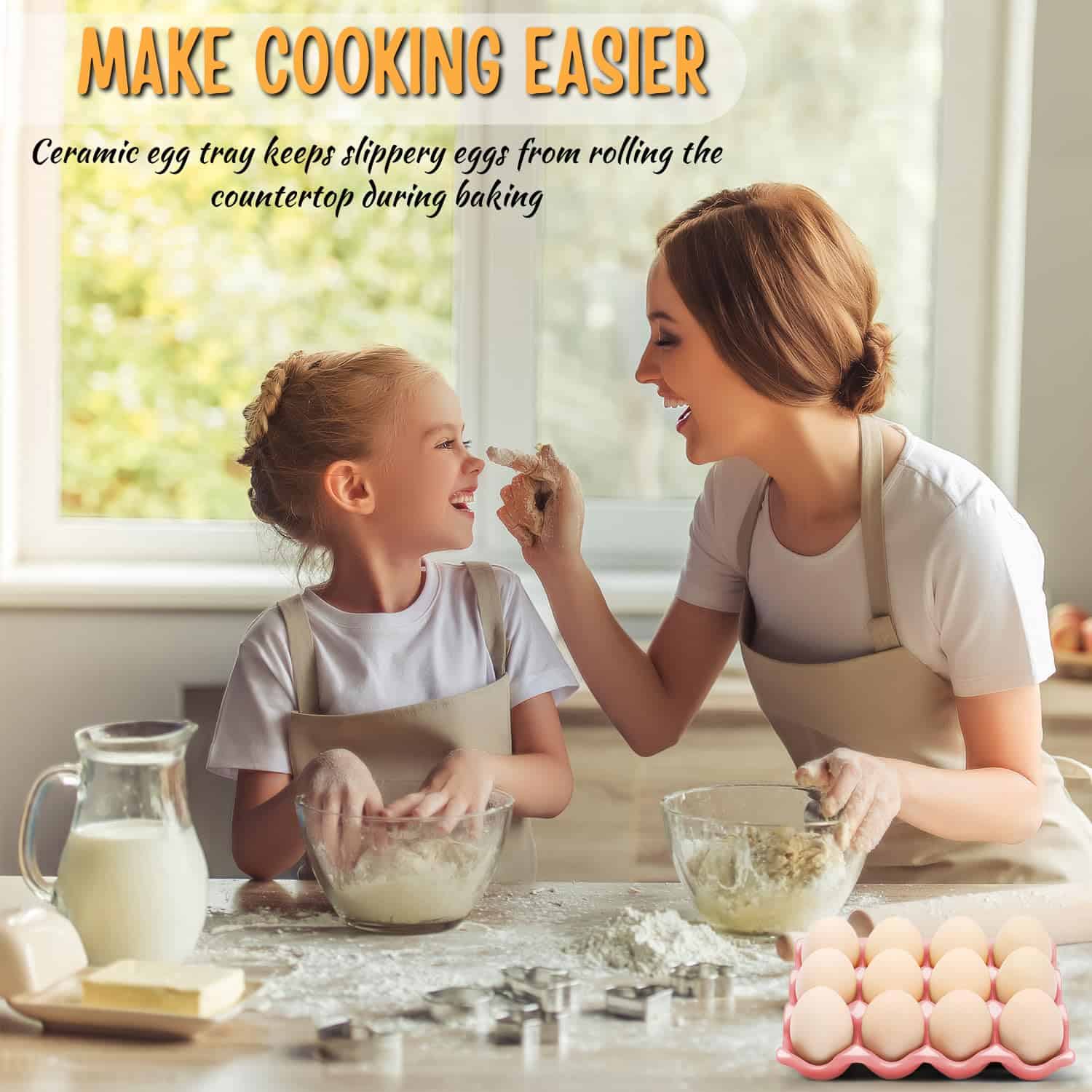 4. Fácil de limpiar Bandeja de huevo: Material suave e impermeable que resiste las manchas y puede limpiarse fácilmente con una esponja abrasiva y agua jabonosa. El material de cerámica de alta calidad es sólido, duradero y resiste los arañazos.
