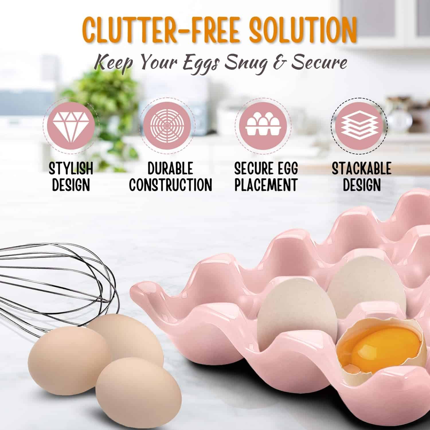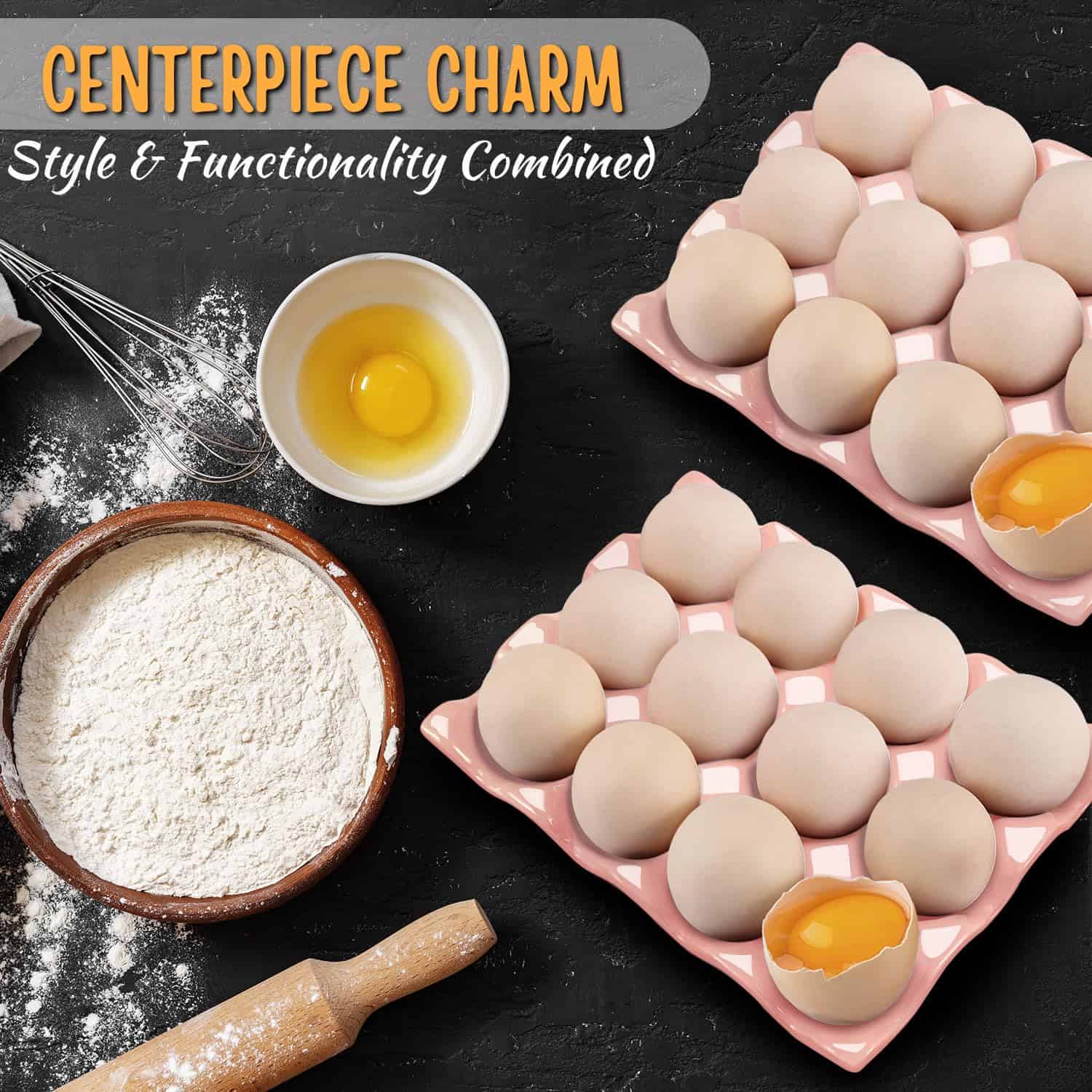 Porta huevos de cerámica de 12 tazas Flexzion – Bandeja de