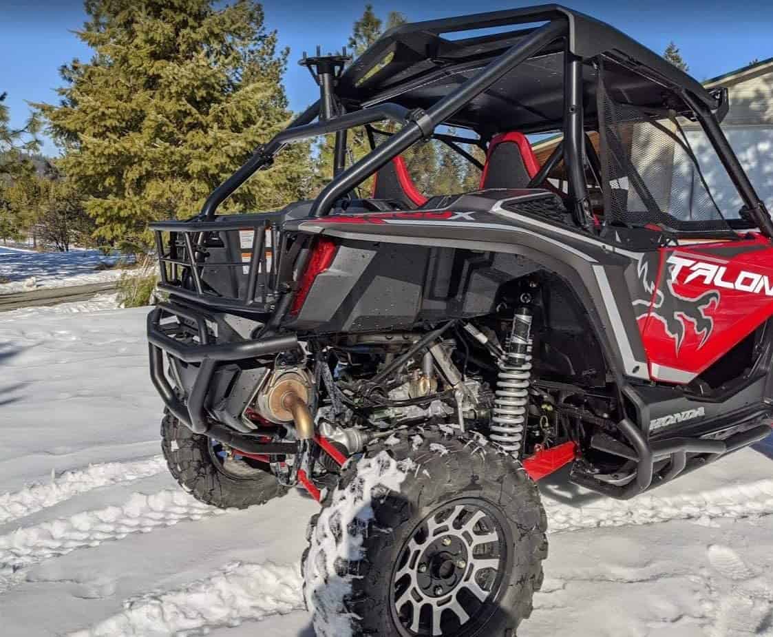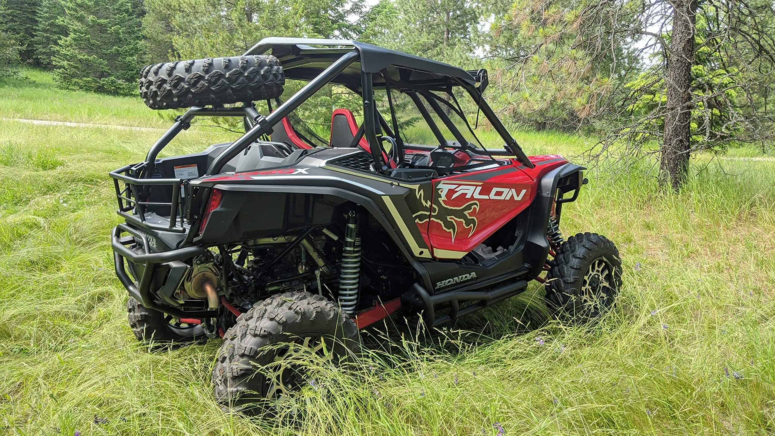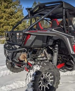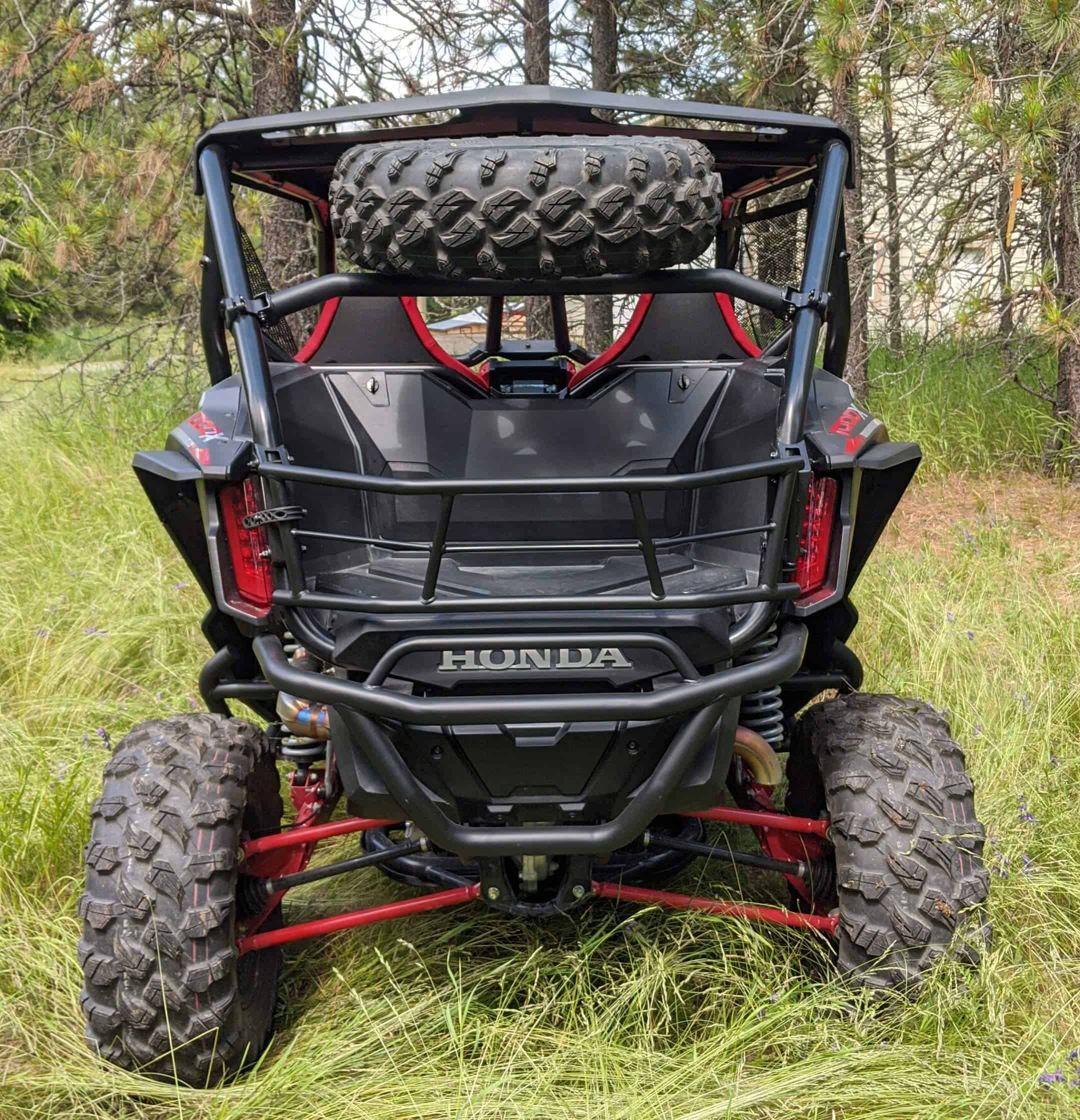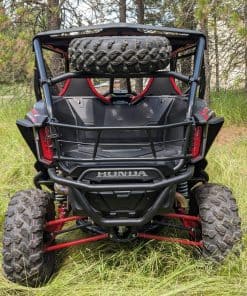 Construido con tubos de acero de 1.75 pulgadas resistente, se adapta a una llanta de repuesto de hasta 32″ (la llanta no está incluida) – Consulta la imagen adjunta para limitación de tamaño de llanta. Se monta de forma segura y fácil en la jaula de protección utilizando dos abrazaderas de fundición sin necesidad de perforar o cortar. Se incluyen cuatro tuercas de rueda M12. Posiciona la llanta arriba para proporcionar una visibilidad decente, el espacio libre de 22″ bajo el portador de la llanta puede ahorrar la mayor parte del espacio de carga. Excelente para remolques de baja altura con ubicación de llanta de bajo perfil. Acabado en polvo resistente a los rayos UV. Diseñado por Aprove USA. Compatible con: Honda Talon 1000X (2019-2021) Honda Talon 1000R (2019-2021).