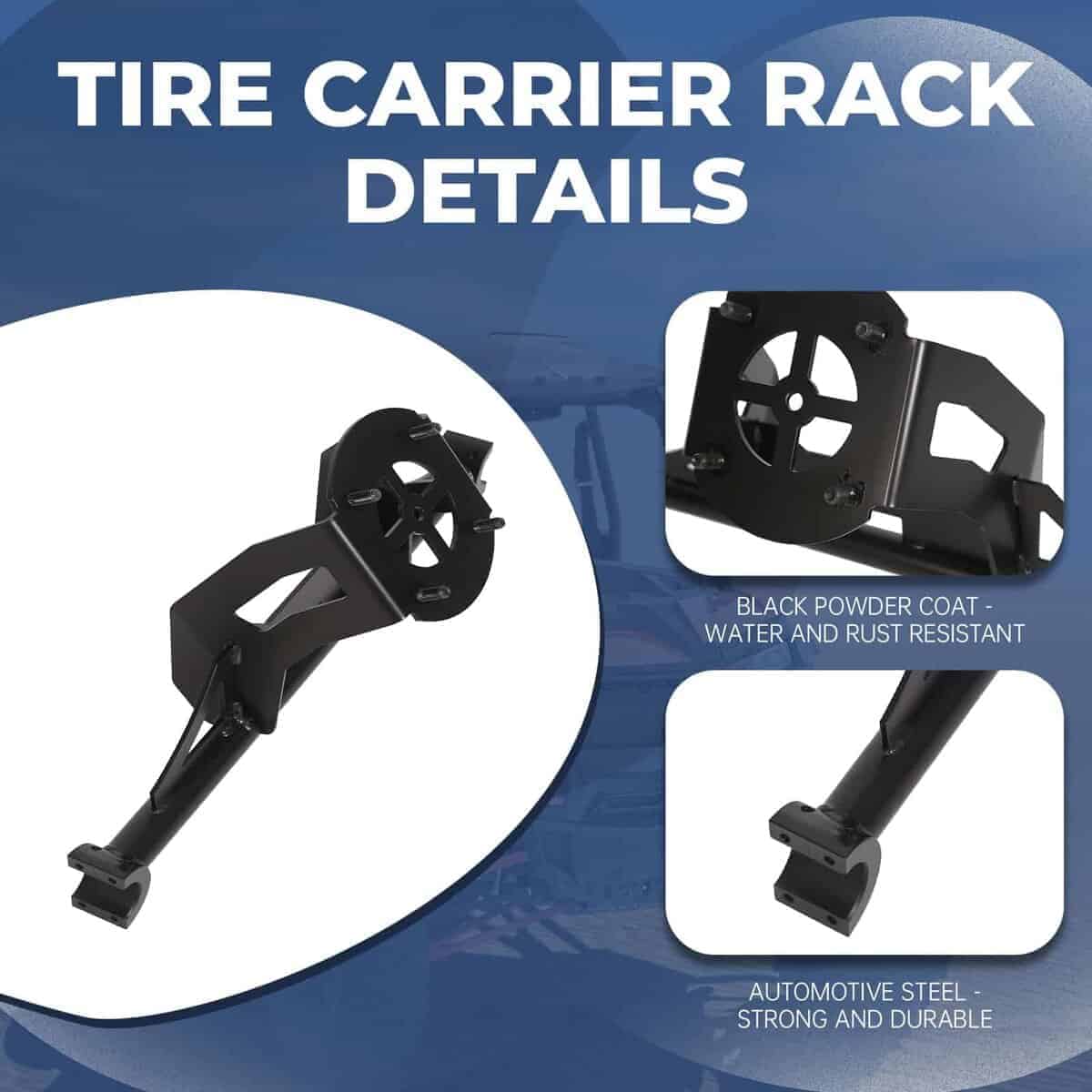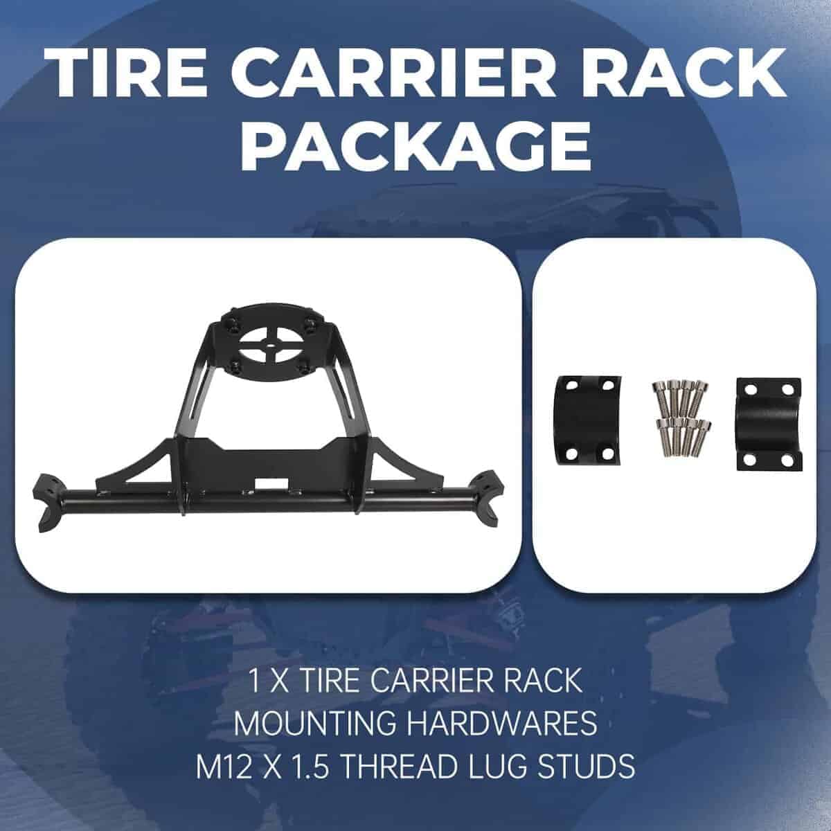 Porta llanta resistente para aquellos que tienen pinchazos en el sendero. Orificio de montaje de bandera central, aspecto deportivo, ubicación de perfil bajo. El neumático no sobresaldrá por encima de la jaula antivuelco de fábrica, ideal para remolques de baja altura. Pernos de orejeta roscados M12 x 1.5. El neumático/llanta se monta de forma segura con cuatro tuercas de orejeta (no incluidas), incluye todos los herrajes de montaje. Nota técnica: En algunas aplicaciones, puede ser necesario un espaciador para que la llanta despeje la parte inferior del soporte. Compatibilidad: Modelos Ploaris RZR XP 2014-2023. Color: Negro. Material: Acero. Lista de embalaje: 1 juego de porta llantas
