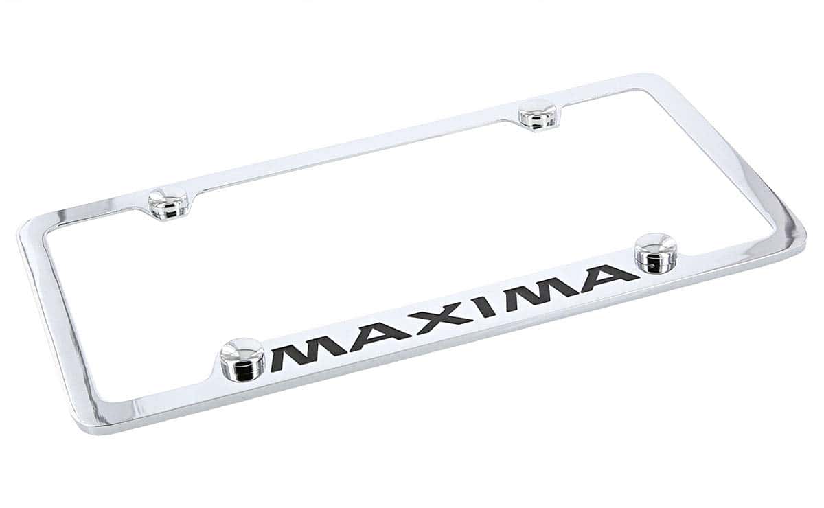 Muestre su orgullo por Nissan con este elegante marco de matrícula oficial de Nissan de latón macizo pulido con la marca Maxima. Fabricado en metal de latón sólido de alta calidad. Supera todos los estándares OE. Cromado con recubrimiento transparente para protección. Marco de estilo de 4 agujeros. Grabado de precisión y relleno de resina epoxi protegida contra rayos UV, además de pulido a mano. Viene con tapas de tornillo a juego y empaquetado para protección. Tamaño estándar de marco para EE. UU. y Canadá. Un excelente regalo para un nuevo propietario de Nissan. Producto oficial con licencia de Nissan.