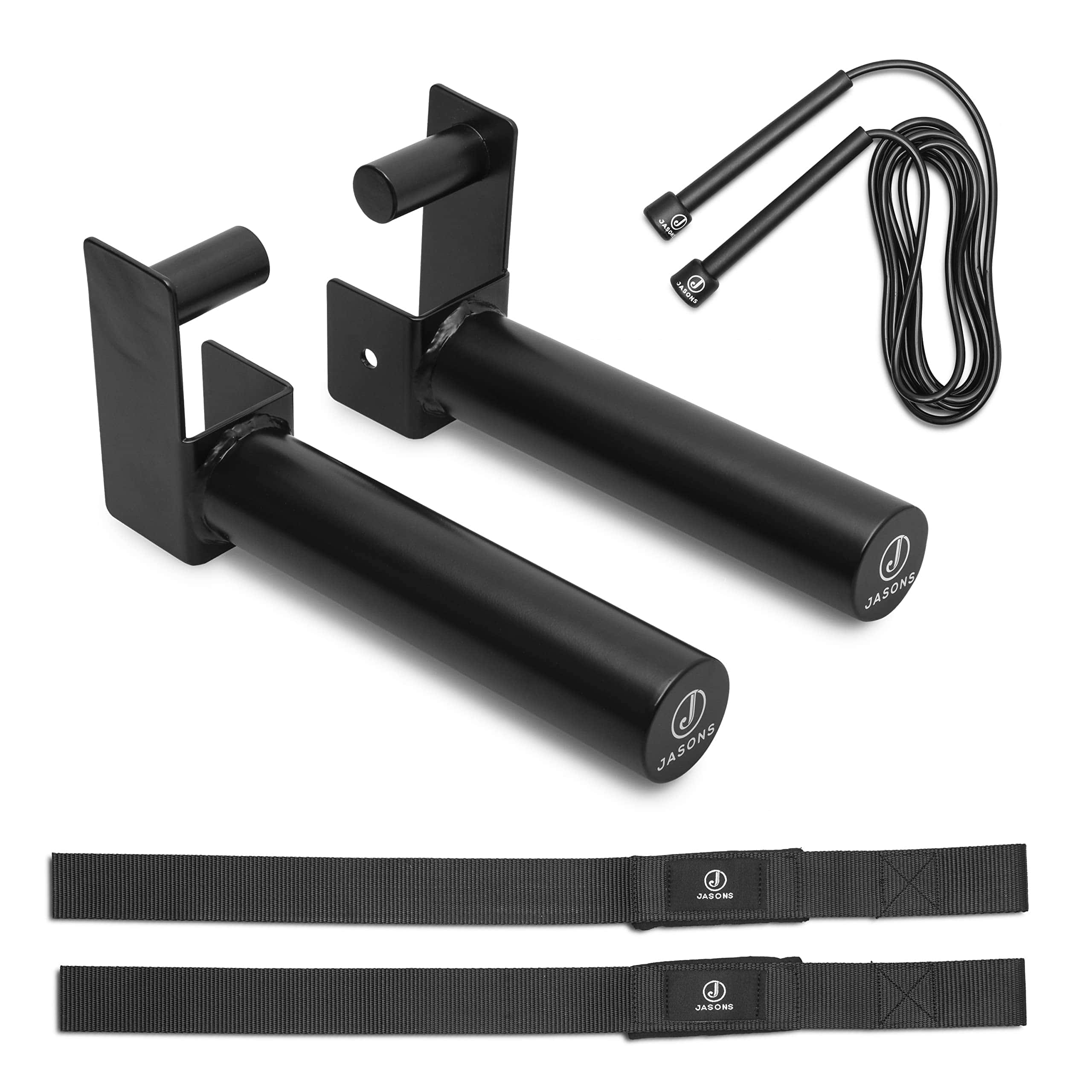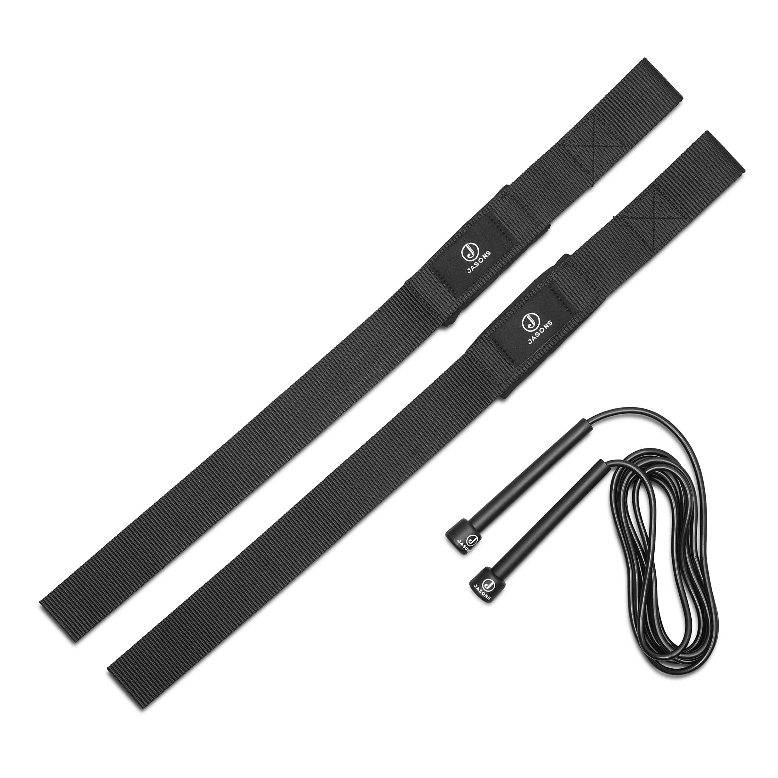 5. BONO INCLUIDO El soporte de placas de peso de Jasons viene con productos adicionales cuerda para saltar y correas de levantamiento de pesas. Mejora tus músculos en general usando la cuerda para saltar y las correas de levantamiento de pesas.