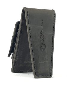 El Porta Púas de Guitarra de Cuero de Anthology Gear La fiebre, el sudor goteando del blues, la suciedad cruda y arenosa bajo las uñas, el despiadado y alma que no puedes obtener en ningún otro lugar mejor que directamente de la botella. Y por botella me refiero, por supuesto, a la púa de botella. Desde el gruñido gutural hasta el grito penetrante, nada más es tan sonoramente elocuente sobre el tema del desamor entre otras condiciones humanas que impulsan una expresión urgente e apasionada. Sí, tocar la guitarra con púa inspirado siempre es más matizado y conmovedor que lo que meras palabras o acordes puedan articular nunca. No es que tu púa tenga que ser de cristal. Podría ser cerámica, bronce, acero inoxidable, aluminio o cromo, o incluso solo un viejo pedazo sucio de tubería de PVC. Pero si se siente bien y resuena con los tonos y el dulce y sostenido sustento que se adapta a tu sonido, bueno, más que una extensión de tu mano, esa púa ahora es parte de tu voz. Y como tu voz, nunca quieres perderla, la quieres ahí mismo y siempre lista, especialmente al tocar en vivo. Entonces el fácil acceso fue el objetivo principal detrás de nuestro resistente y simple, pero distintivo y distinguido diseño de porta púas Como una cuchilla afilada, puede que sea pequeño, pero corta en grande.