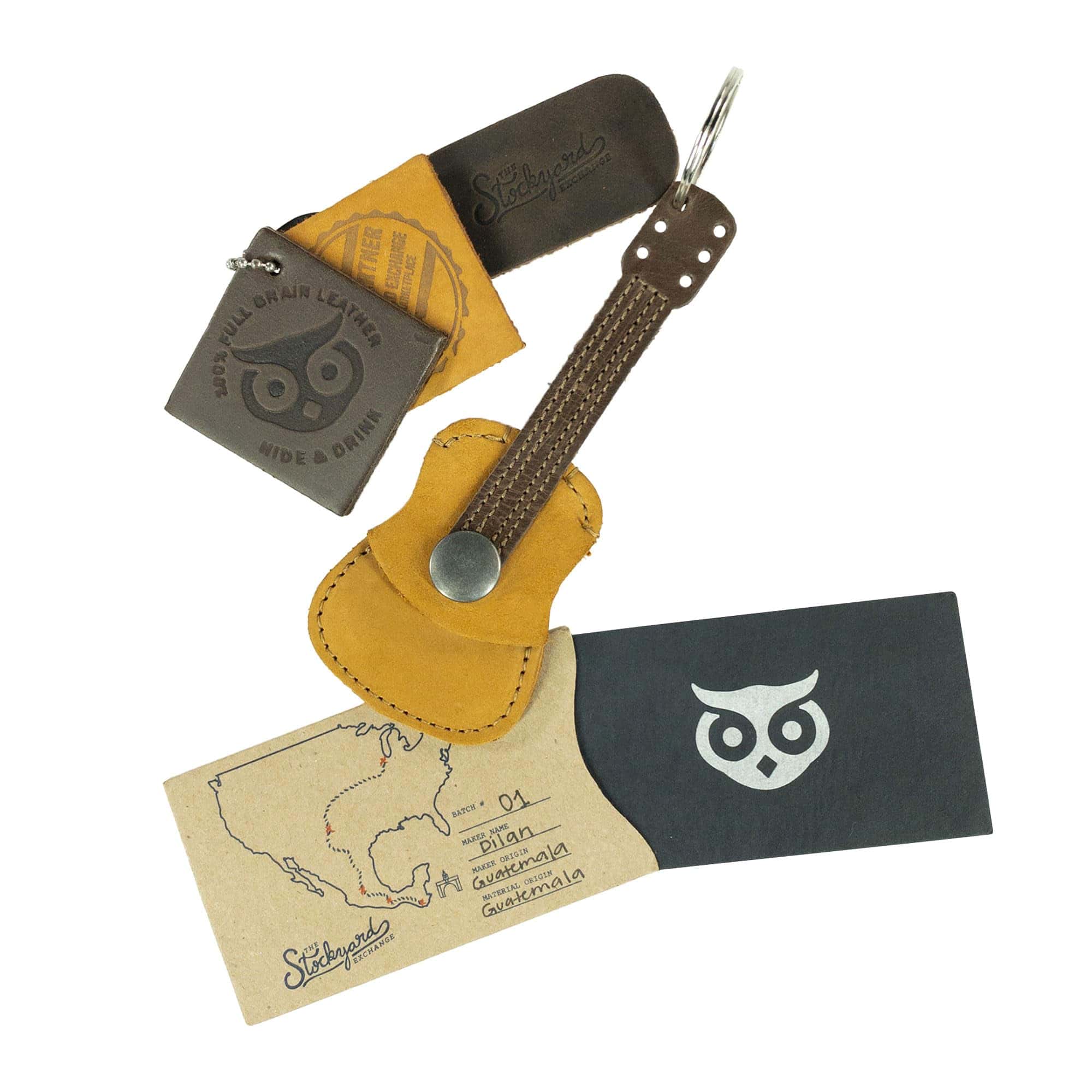 Porta Púas de Guitarra de Cuero Hide & Drink con Llavero,