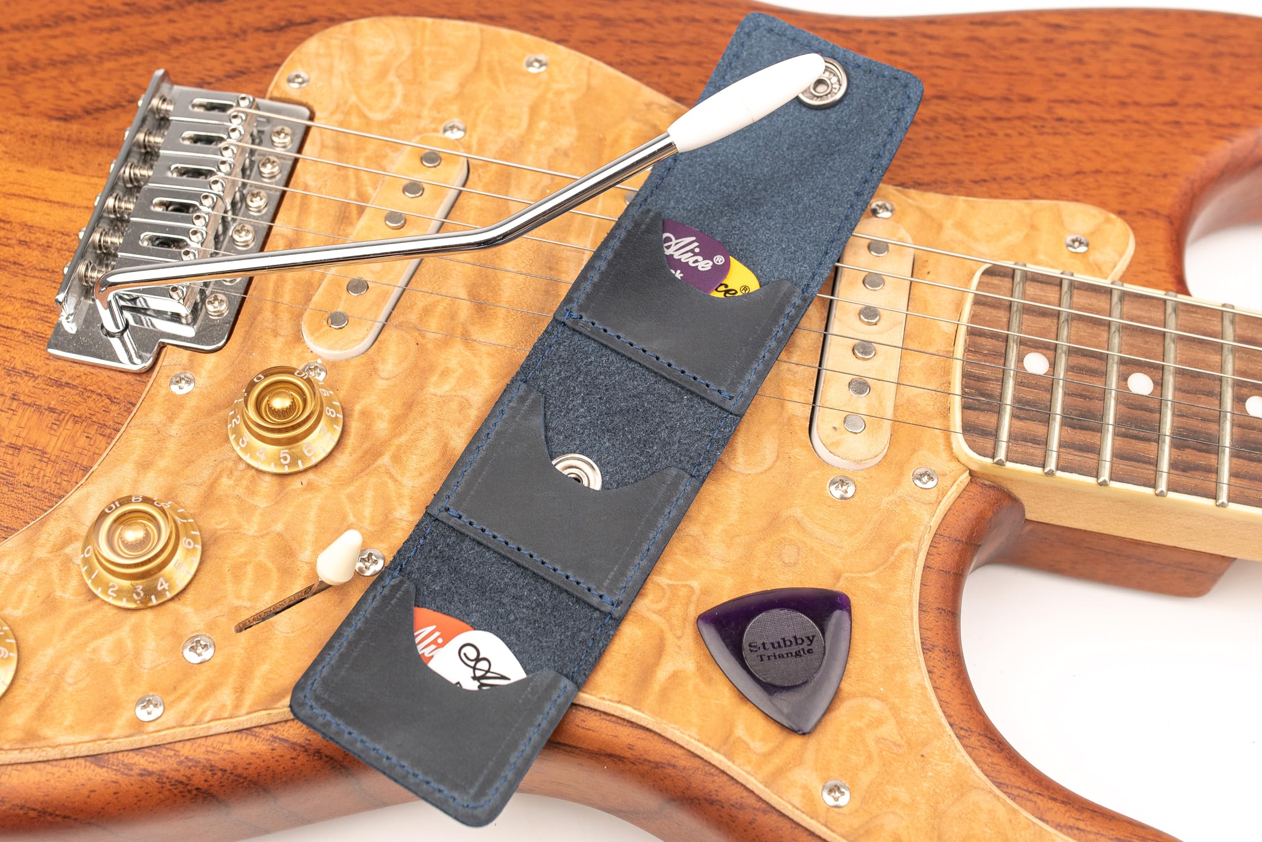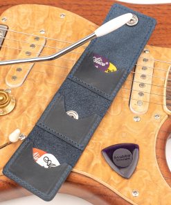 Nuestro porta púas de guitarra de cuero es perfecto para guitarristas que tocan guitarras clásicas y eléctricas. Puedes comprarlo para ti mismo o como un regalo ideal para músicos.