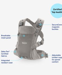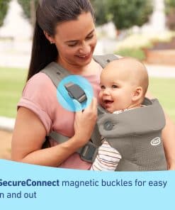 Viajen juntos mientras se vinculan con su pequeño. El portabebé Graco Cradle Me Lite 3 en 1 tiene 3 formas de transportar al bebé, incluido un asiento para recién nacidos que no requiere un inserto. Las hebillas SecureConnect utilizan imanes como guía y un seguro para conectar, ¡facilitando la entrada y salida del bebé de forma segura! Cuenta con 3 formas de uso: asiento de recién nacido hacia adentro, asiento de bebé hacia adentro y asiento de bebé hacia afuera. Este portabebé cuenta con un panel frontal de malla transpirable para mantener al bebé fresco y telas certificadas Oeko-Tex, lo que significa que los materiales están certificados libres de niveles nocivos de productos químicos y está certificado STANDARD 100 por OEKO-TEX (20.HTW.01304 | Hohenstein HTTI), lo que significa que el portabebé y sus componentes fueron probados de forma independiente para detectar sustancias dañinas. Una capucha para bebé brinda privacidad para el descanso del bebé y protección solar. Certificado como «amigable para la cadera» por el Instituto Internacional de Displasia de Cadera, este portabebé garantiza que el bebé esté cómodo en todas las posiciones de transporte. Las correas ajustables en X para los hombros junto con el soporte lumbar acolchado garantizan un ajuste cómodo para los padres también. Para usar desde 8 a 30 lb.